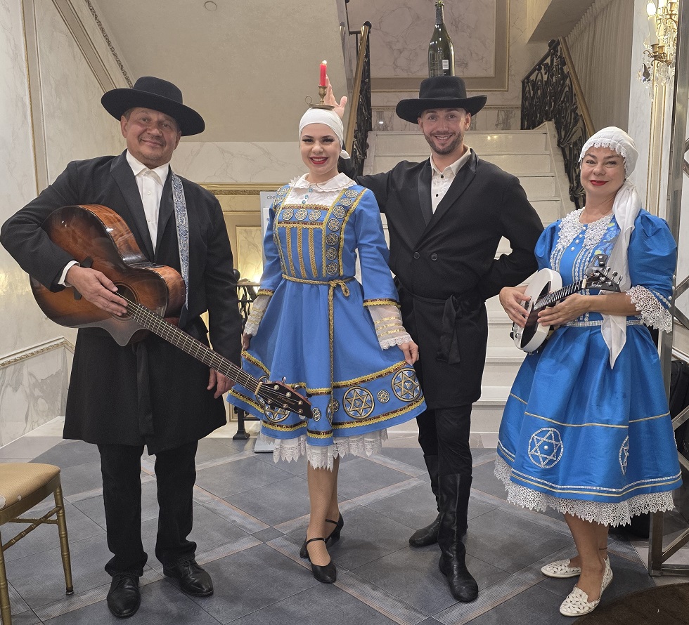 Dancer Arsentii, dancer Alisa, singer Mikhail, and musician Elina presented a vibrant 30-minute show during a pre-wedding celebration at the popular Russian restaurant Baku Palace in Brooklyn. The theme of the evening was "Jewish Shtetl" (Jewish Village / Åâðåéñêîå ìåñòå÷êî) — a lively tribute to the traditions and spirit of old Eastern European Jewish life. The performance featured the famous Bottle Dance, a series of joyful Jewish wedding dances, traditional songs, and instrumental pieces, creating an atmosphere filled with culture, energy, and celebration.