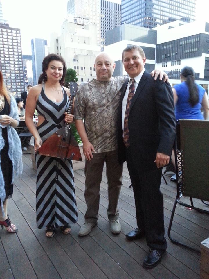 NY Balalaika Duo {Elina Karokhina and Mikhail Smirnov} performed during Russian Orthodox Maslenitsa (блины и прощённое воскресенье) celebration at the Synodal Cathedral of the Icon of Our Lady of the Sign, 75 East 93rd Street, New York, NY 10128-1331 on Sunday, February 22, 2015. On the photo in the middle balalaika virtuoso Elina Karokhina with Prince Vladimir K. Galitzine.