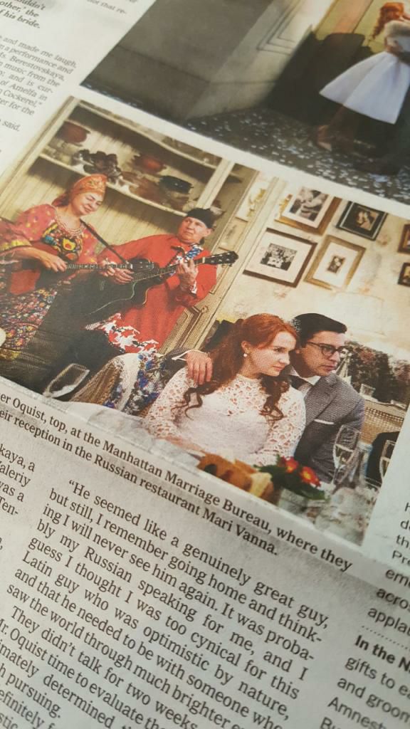 Photo of Elina Karokhina and Mikhail Smirnov with the Bride and Groom in the New York Times on March 17, 2017 (wedding fashion section)
