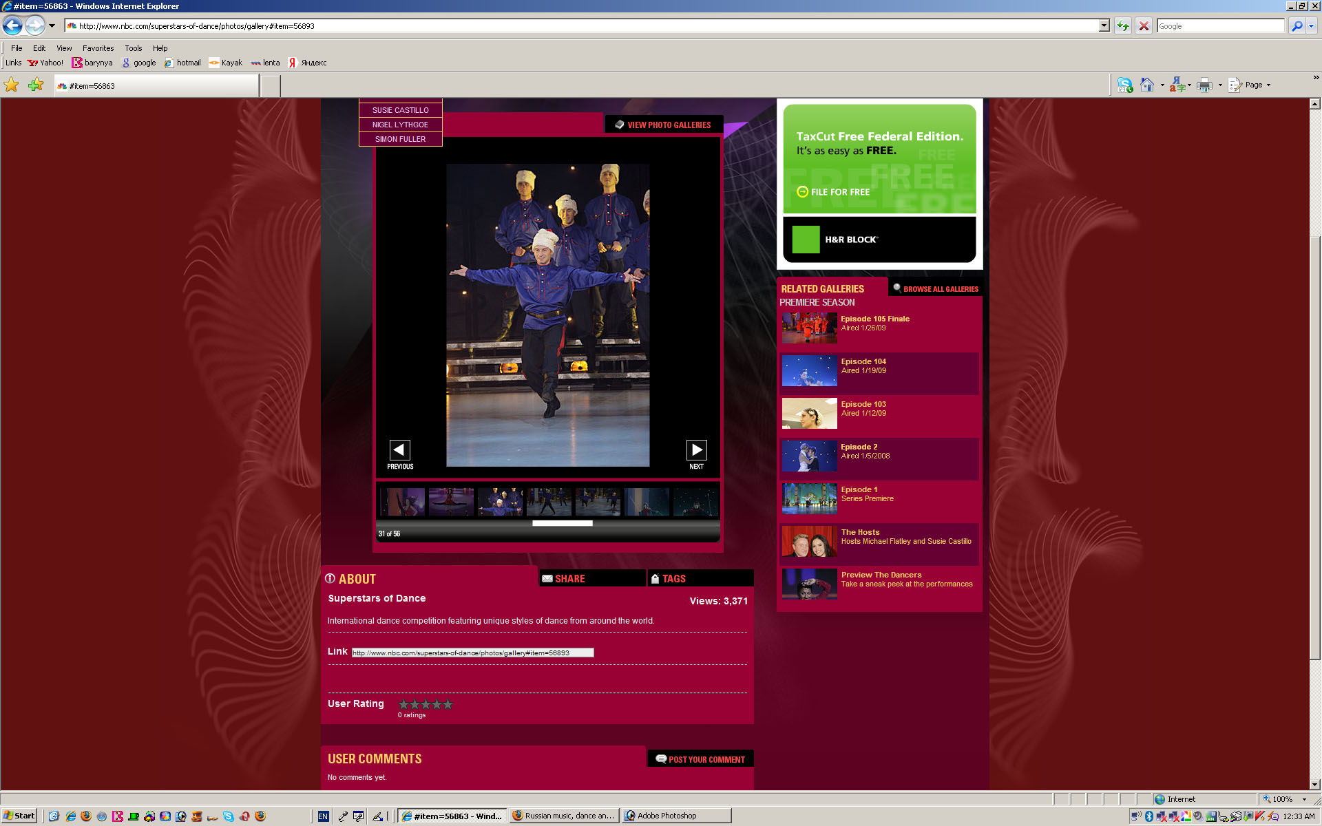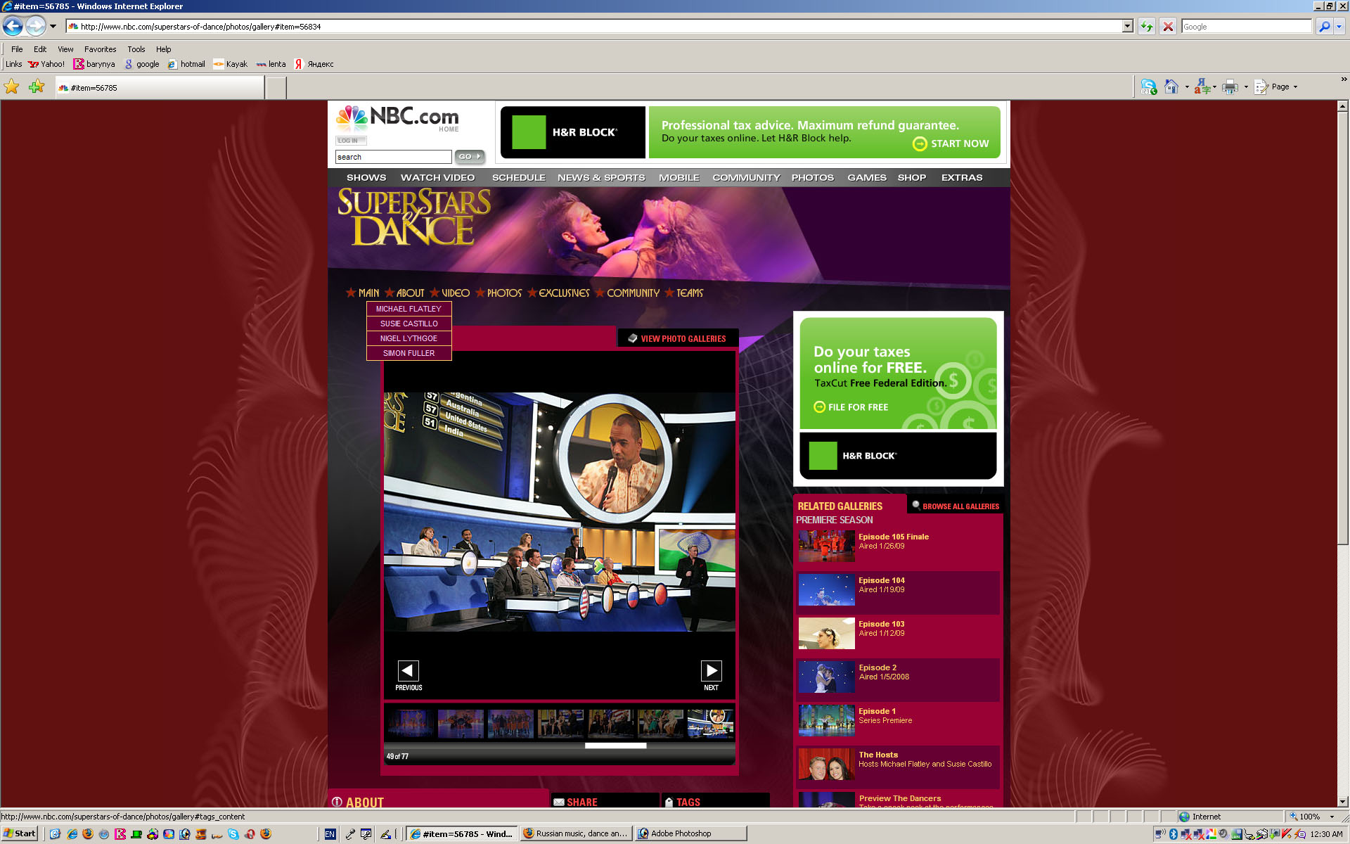 Barynya Cossack dancers performed at SUPERSTARS OF DANCE international dance competition led by executive producers Nigel Lythgoe and Simon Fuller (American Idol, So You Think You Can Dance). The show hosted by Michael Flatley (Lord of the Dance) and Susie Castillo, a former Miss USA, premiered on NBC network on January 4th and aired through January 26th, 2009. Artistic Director of Barynya ensemble Mikhail Smirnov was one of eight judges to decide which country will take home the coveted Trophy. Mikhail was not able to vote for Cossack dancers or the Russian team.