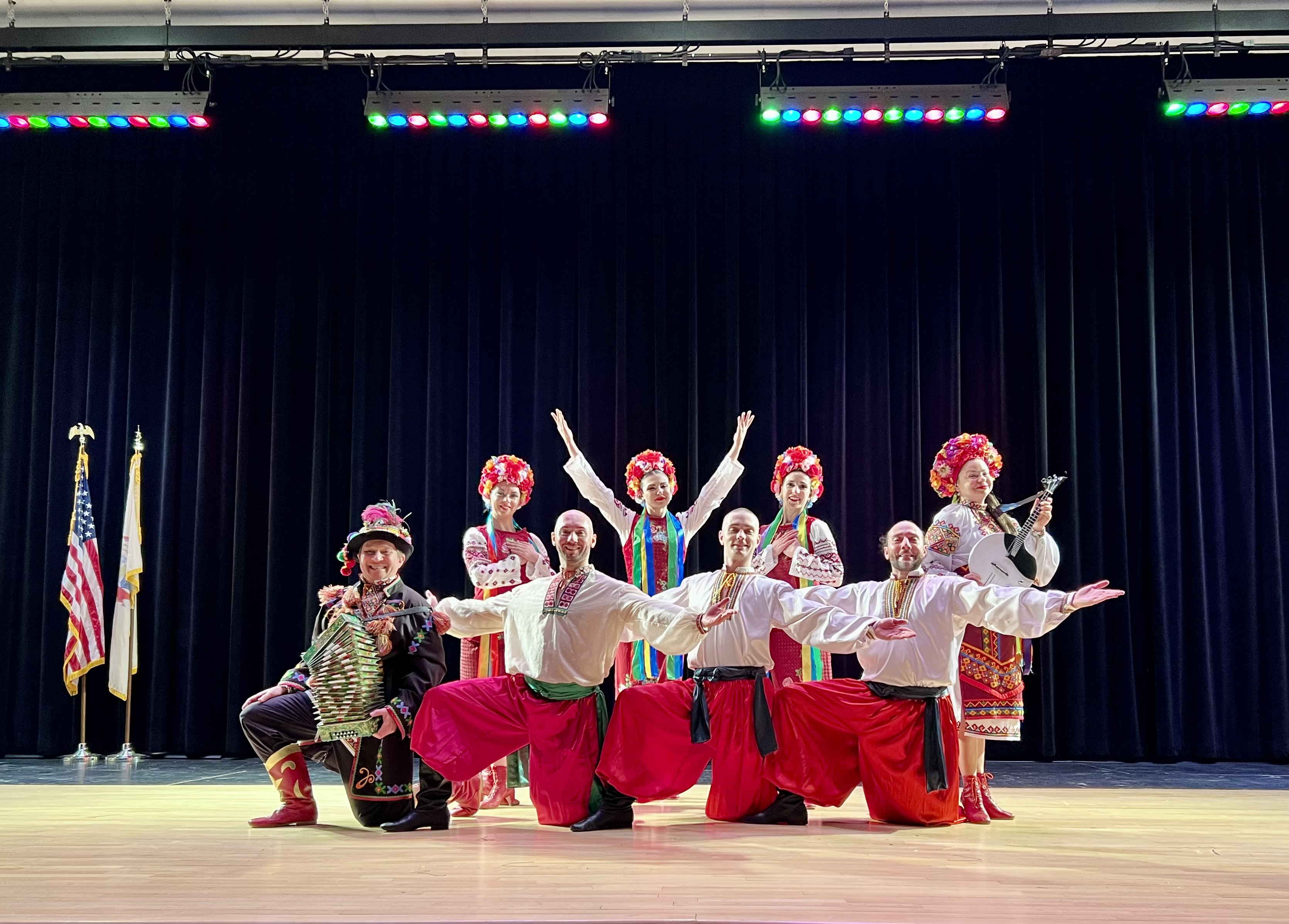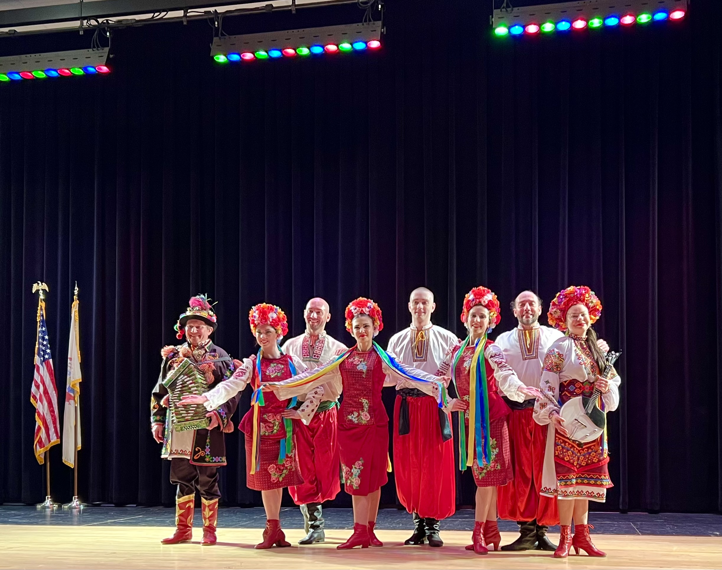 Six dancers, two musicians and singer provided 1 hour 15 min show at the Siena College in Loudonville, New York on Thursday, October 6, 2022. The show was titled Uniting with Ukraine.