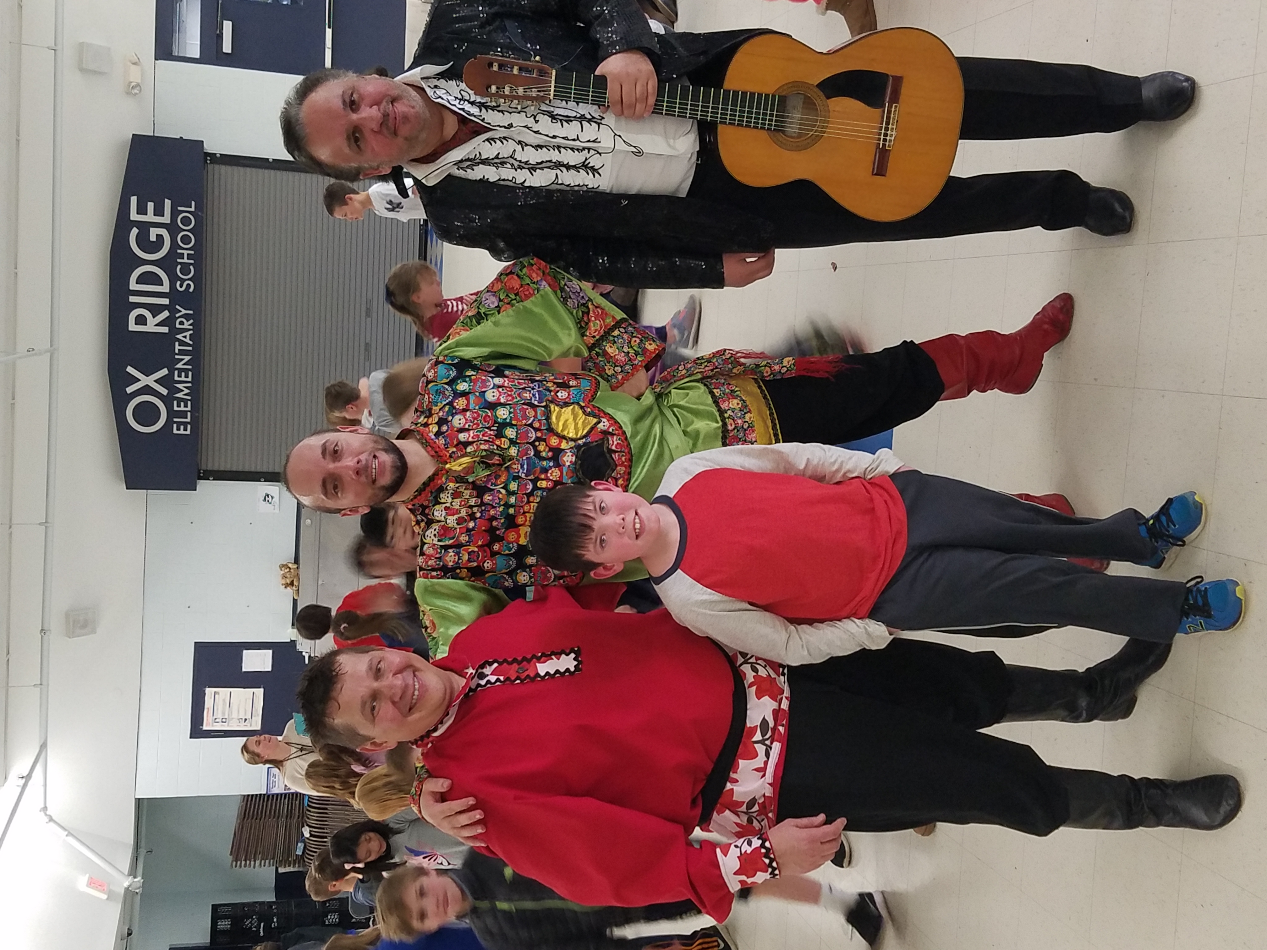 Russian dance, song, and music ensemble Barynya led by Russian folk accordion garmoshka player and singer Mikhail Smirnov with Russian Gypsy singer Vasiliy Romani and Ukrainian Cossack dancer Serhiy Tsyganok provided two 45 min shows on Tuesday, March 6, 2018 (1:40-2:25pm and 2:30-3:15pm) at the Ox Ridge Elementary School, 395 Mansfield Ave, Darien, CT 06820 and two 45 min performances of Russian, Cossack, Ukrainian, Russian Gypsy and Jewish songs, music, and dances on Tuesday, March 6th, 2018 (8:45 and 9:45am) at the Tokeneke School, 7 Old Farm Rd, Darien, CT 06820.