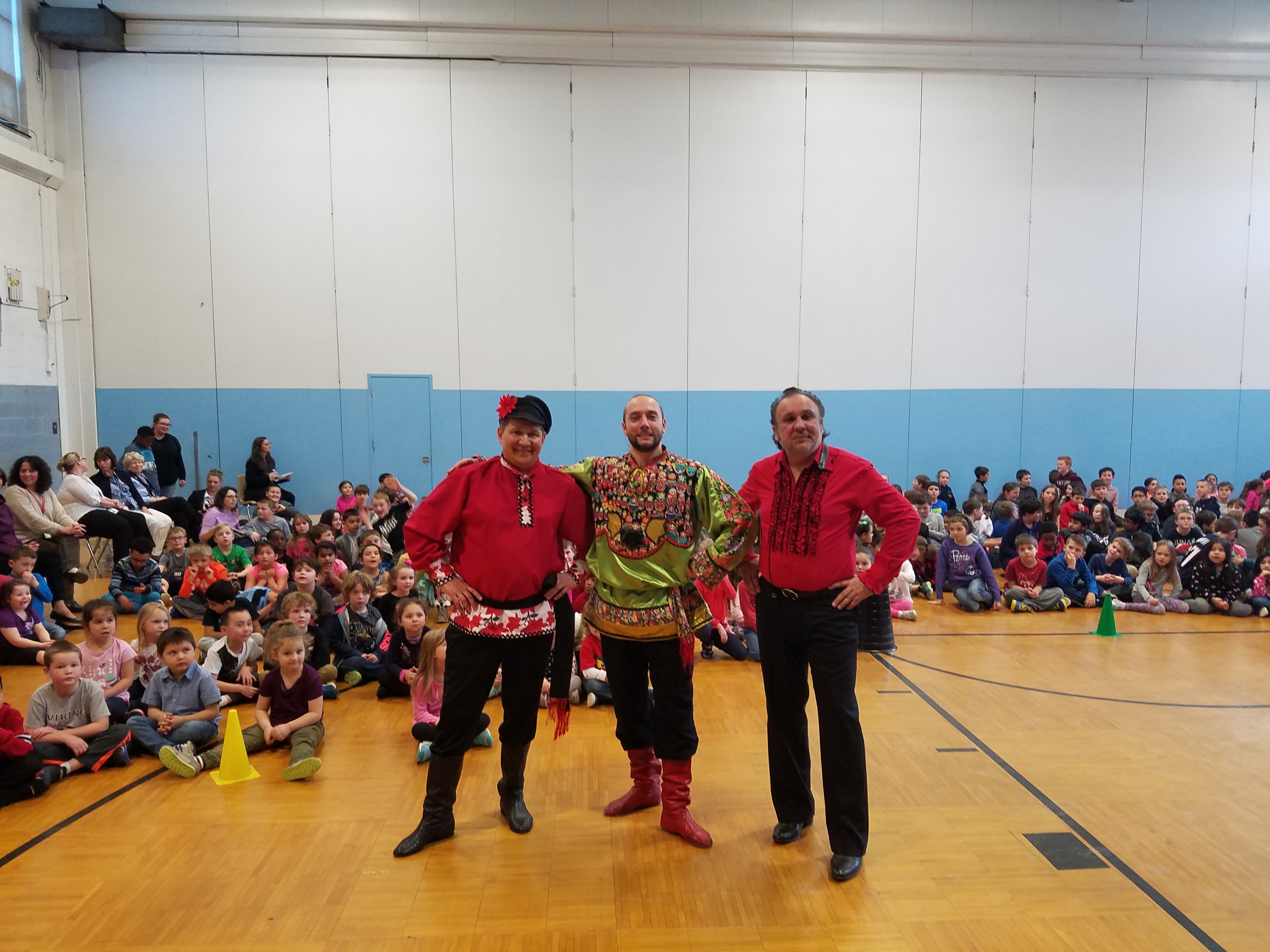 Russian traditional dance, song, and music trio provided 45 min performance of Russian, Cossack, Ukrainian, Russian Gypsy and Jewish dances, songs, and music on Tuesday, February 27, 2018 at the Haynes Elementary School in Connecticut. Cast od performers: Russian folk accordion garmoshka player and singer Mikhail Smirnov, Russian Gypsy singer Vasiliy Romani and Ukrainian Cossack dancer Serhiy Tsyganok.
