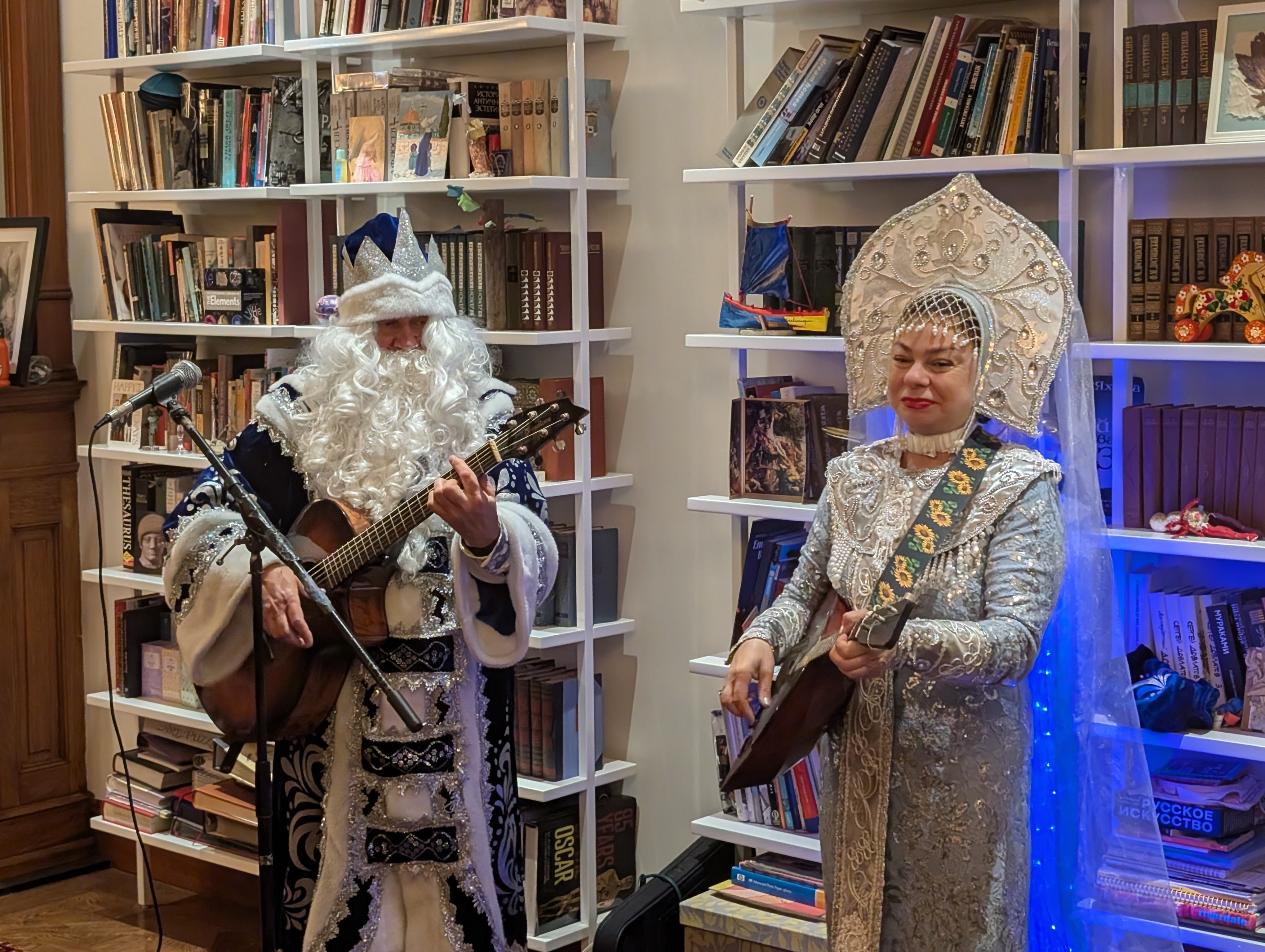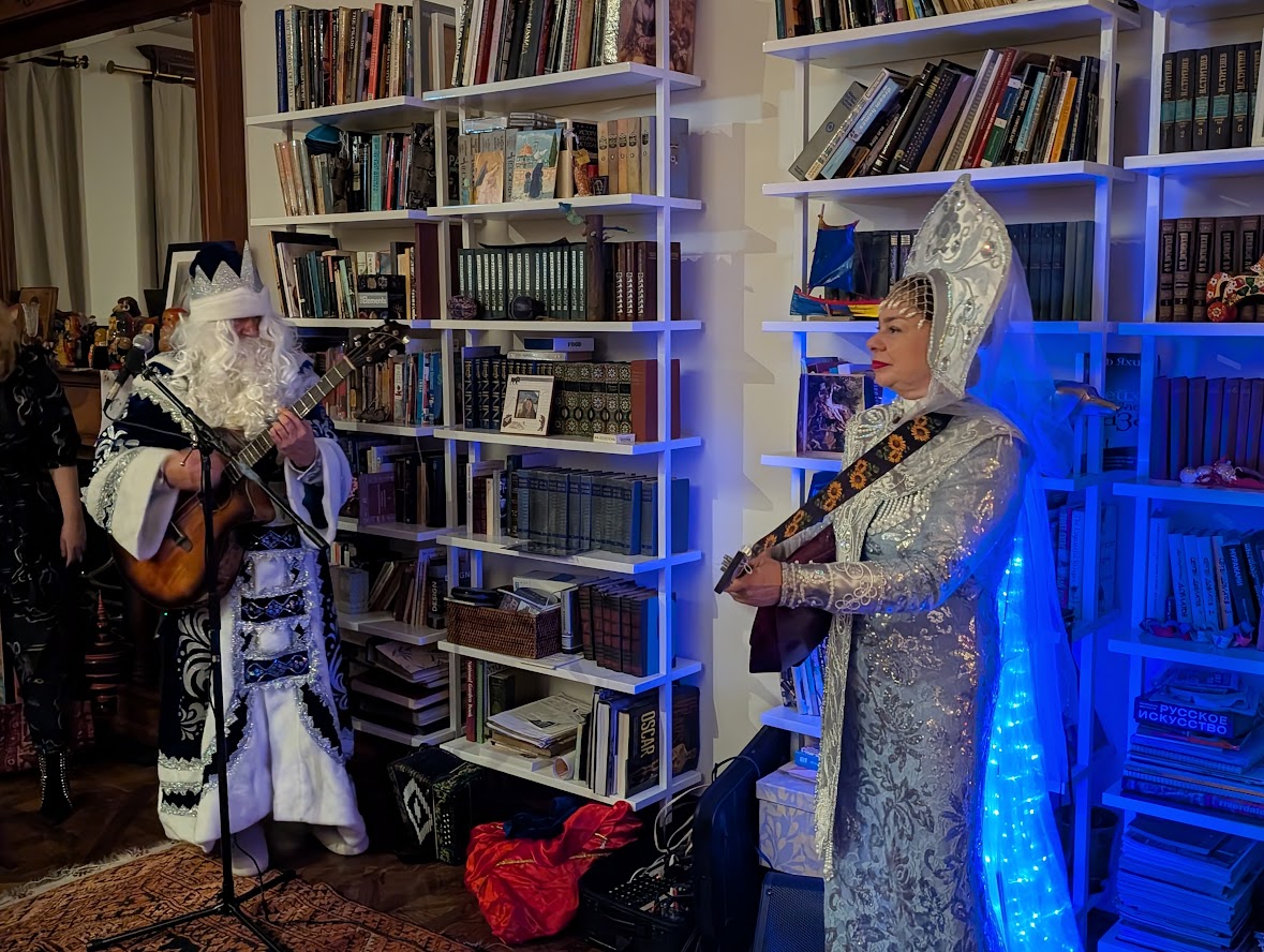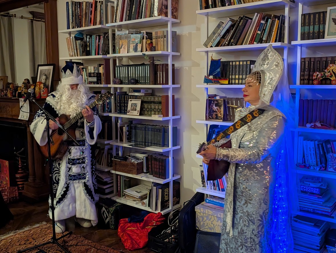 Ded Moroz and Snegurochka brought gifts to kids, and played favorite Russian and international songs during "old" Russian New Year's celebration in New York City on Januaty 11th, 2026. Дед Мороз и Снегурочка приехали поздравить детей и взрослых в частном доме на Вест-Сайде в Манхэттене. Ded Moroz (singer, garmoshka and guitar player Mikhail Smirnov) and Snegurochka (balalaika virtuoso Elina Karokhina performed for about an hour while guests of the party were dancing and having good time.