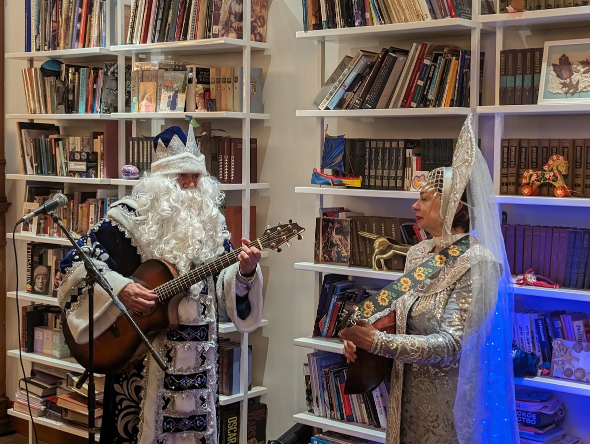 Ded Moroz (garmoshka) and Snegurochka (balalaika) performing Russian song "Увезу тебя я в тундру" during Old Russian New Year's Celebration in New York City