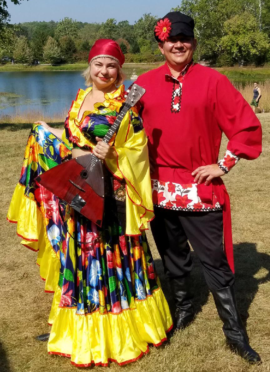 Russian music, dance and song Balalaika Duo (Elina Karokhina, Mikhail Smirnov) performed 1 hour concert during the Passport Europe Festival in Morton Arboretum (Lisle, Illinois) on Sunday, September 24, 2017. The program of performance included Sabre Dance from "Gayane" by Aram Khachaturian, "Fiddler On The Roof" Medley, "Two guitars", Csardas by Vittorio Monti, Paganini's Caprice No. 24, "The Gypsy Trail" (Мохнатый шмель), Rondo Alla Turca (Turkish March) by Wolfgang Amadeus Mozart, "Dark Eyes", Polonaise No. 13 in A minor, "Pozegnanie Ojczyzny" (Farewell to the Fatherland) by Michal Oginski, "Those Were The Days", J.S. Bach - Suite No. 2 - Badinerie (Joke), Pidmanula (Ты ж мэнэ пiдманула), Waltz for Jazz Orchestra No. 2 by Dmitri Shostakovich, Светит месяц - The Moon Is Shining Brightly, Waltz "Babochka" by V. Andreev, Felt Boots (Валенки), Variations on a Theme of Corelli in the Style of Tartini. Composer, Kreisler, Fritz, Iced House (Потолок ледяной, дверь скрипучая), Dr. Zhivago's Somewhere, My Love (Lara's Theme), and other selections. Elina also performed Russian dance "Metelitsa" (The Snowstorm).