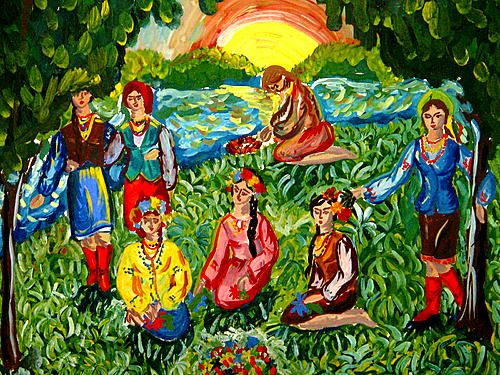 Many of the rites related to this holiday within Slavic religious beliefs, due to the ancient Kupala rites, are connected with the role of water in fertility and ritual purification. Youths would jump over the flames of bonfires. Girls would float wreaths of flowers often lit with candles on rivers and would attempt to gain foresight into their relationship fortunes from the flow patterns of the flowers on the river. Men may attempt to capture the wreaths, in the hope of capturing the interest of the woman who floated the wreath... read more at en.wikipedia.org.