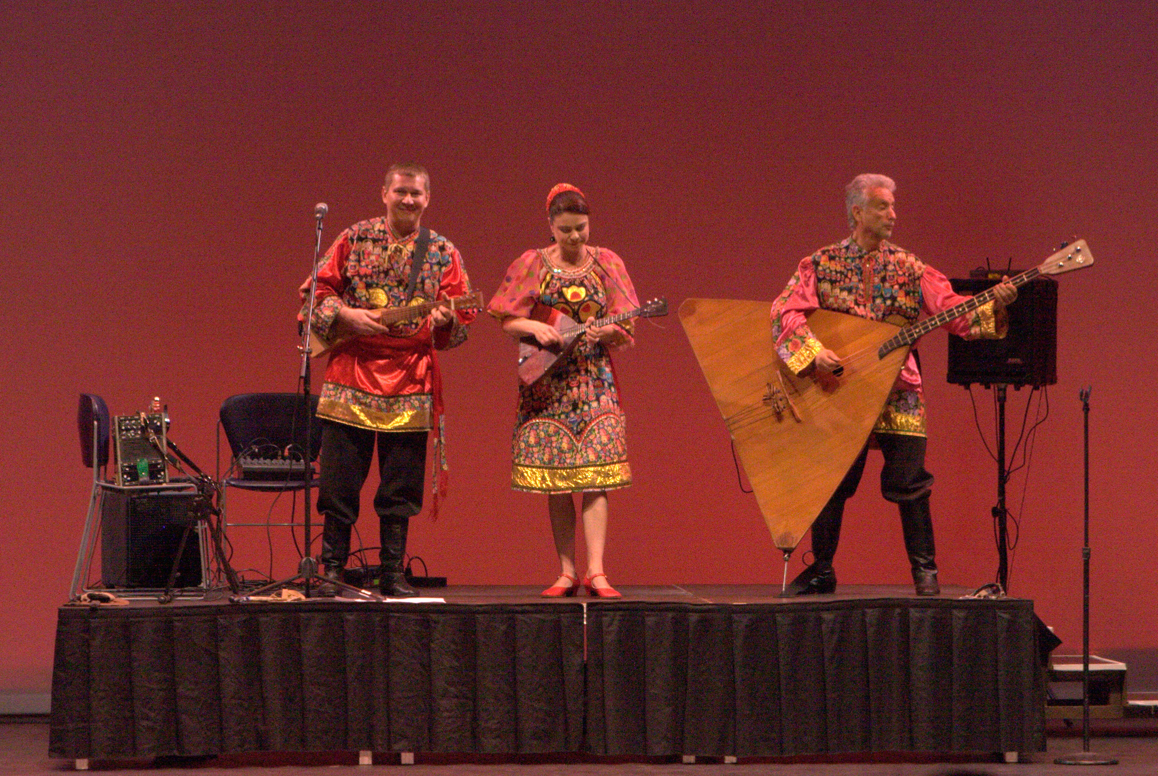 Russian balalaika virtuoso Elina Karokhina, singer/guitar player Mikhail Smirnov, contrabass-balalaika player Leonid Bruk, Arizona Balalaika Orchestra led by conductor Alexander Tentser performed a concert on Saturday, January 26th, 2019 at the Pima Community Center for the Arts in Tucson, Arizona.