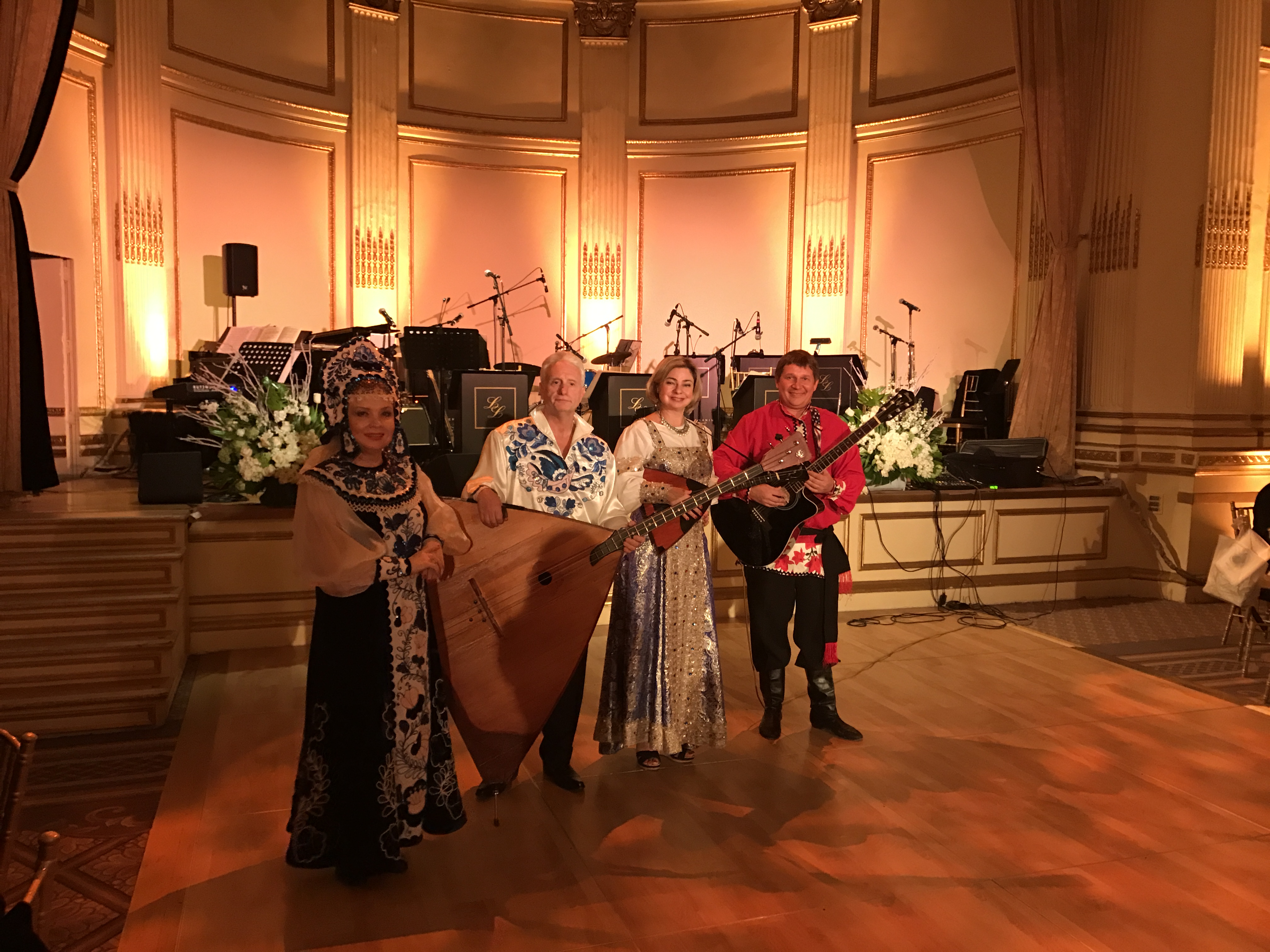 Wednesday, July 12th, 2017, 7-11pm. Corporate event at the Siberian Floors NYC, 145 Hudson Street, New York, NY 10013. Mikhail Smirnov (garmoshka), Elina Karokhina (balalaika), Leonid Bruk (balalaika contrabass), dancer Alisa Egorova, dancer Vladimir Nikitin, dancer Dinara Subaeva, Alex Tseytlin (violin).