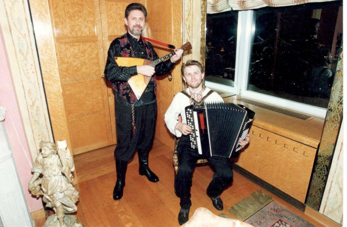 Lev Zabeginsky, Zhenya Shevchenko, Alexander Menshikov during ensemble Barynya concert in New York City in January 2008.