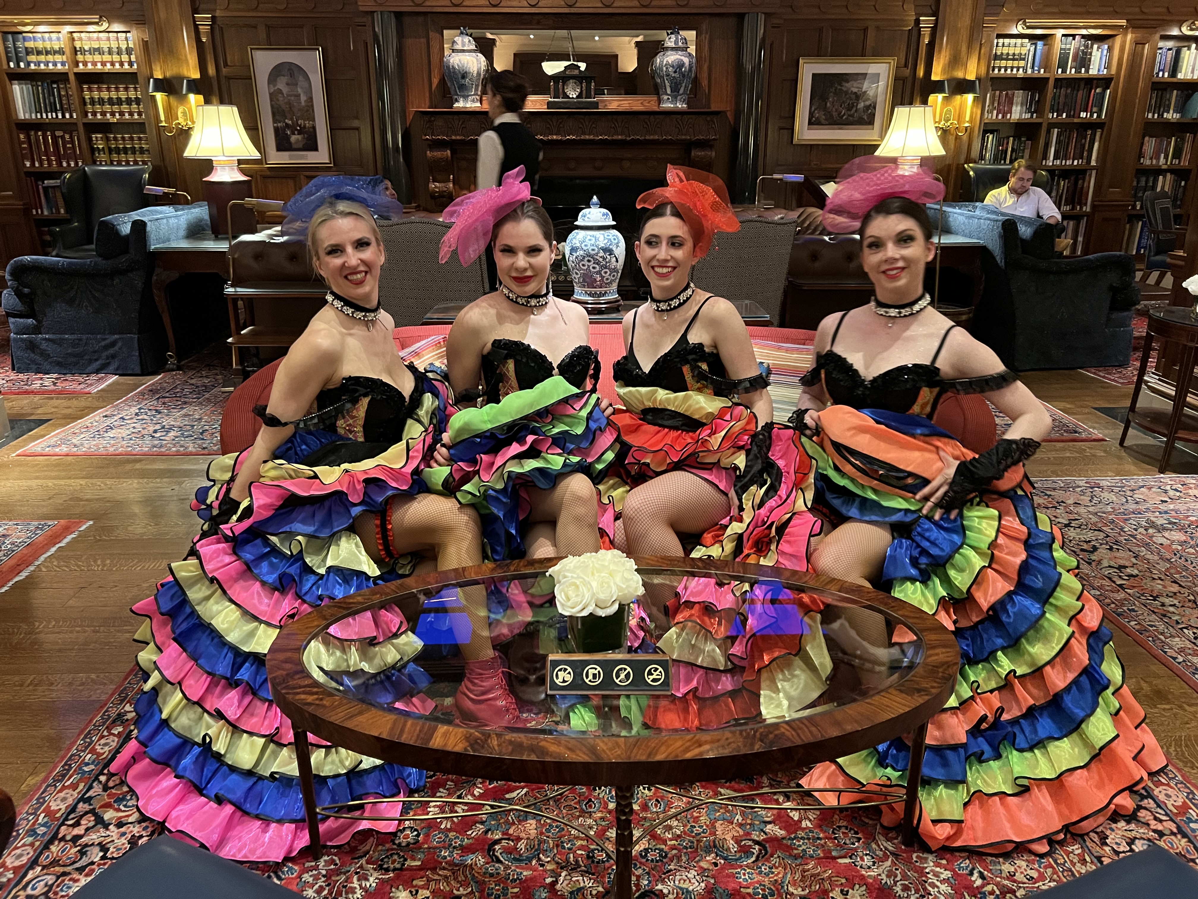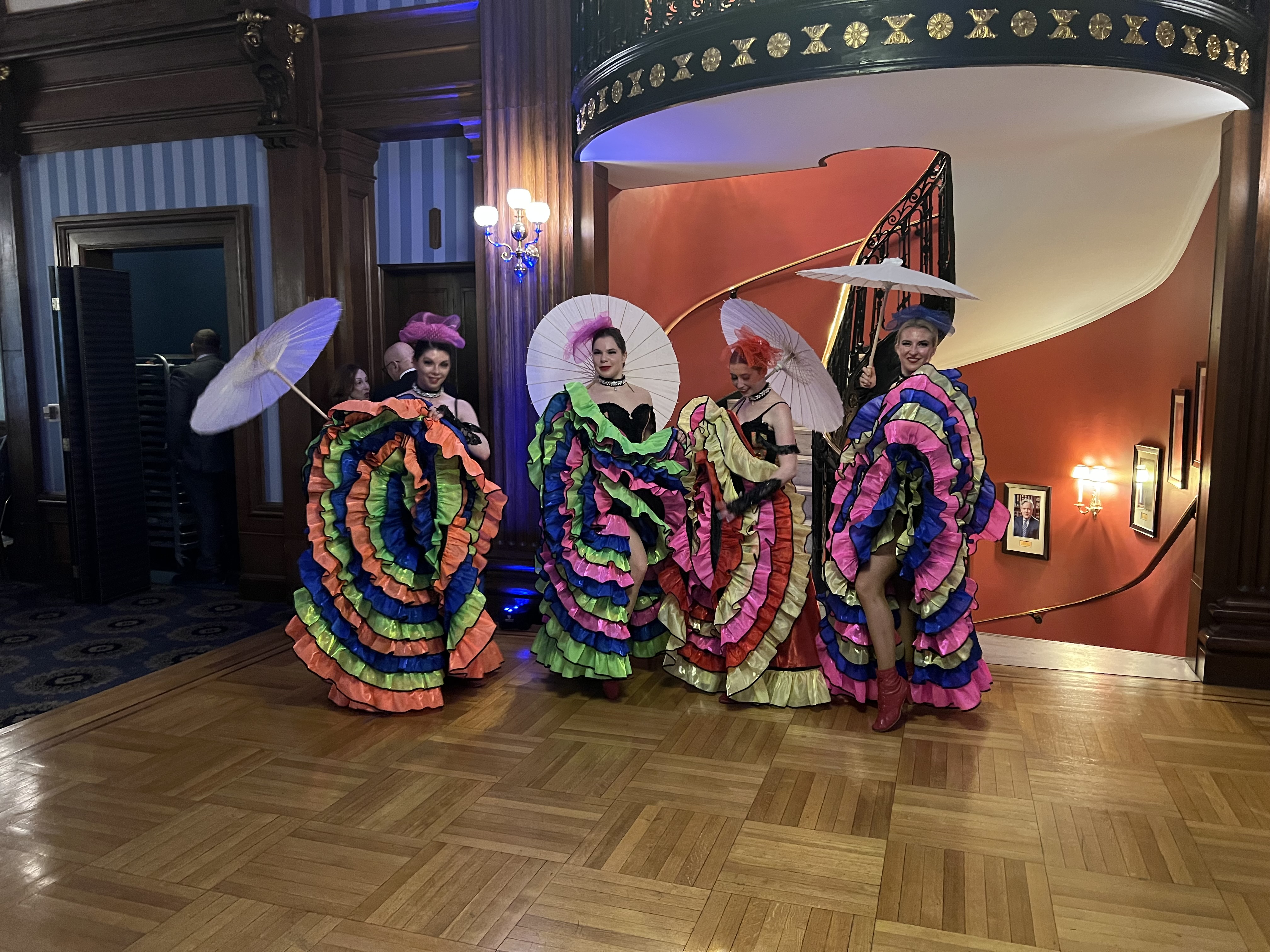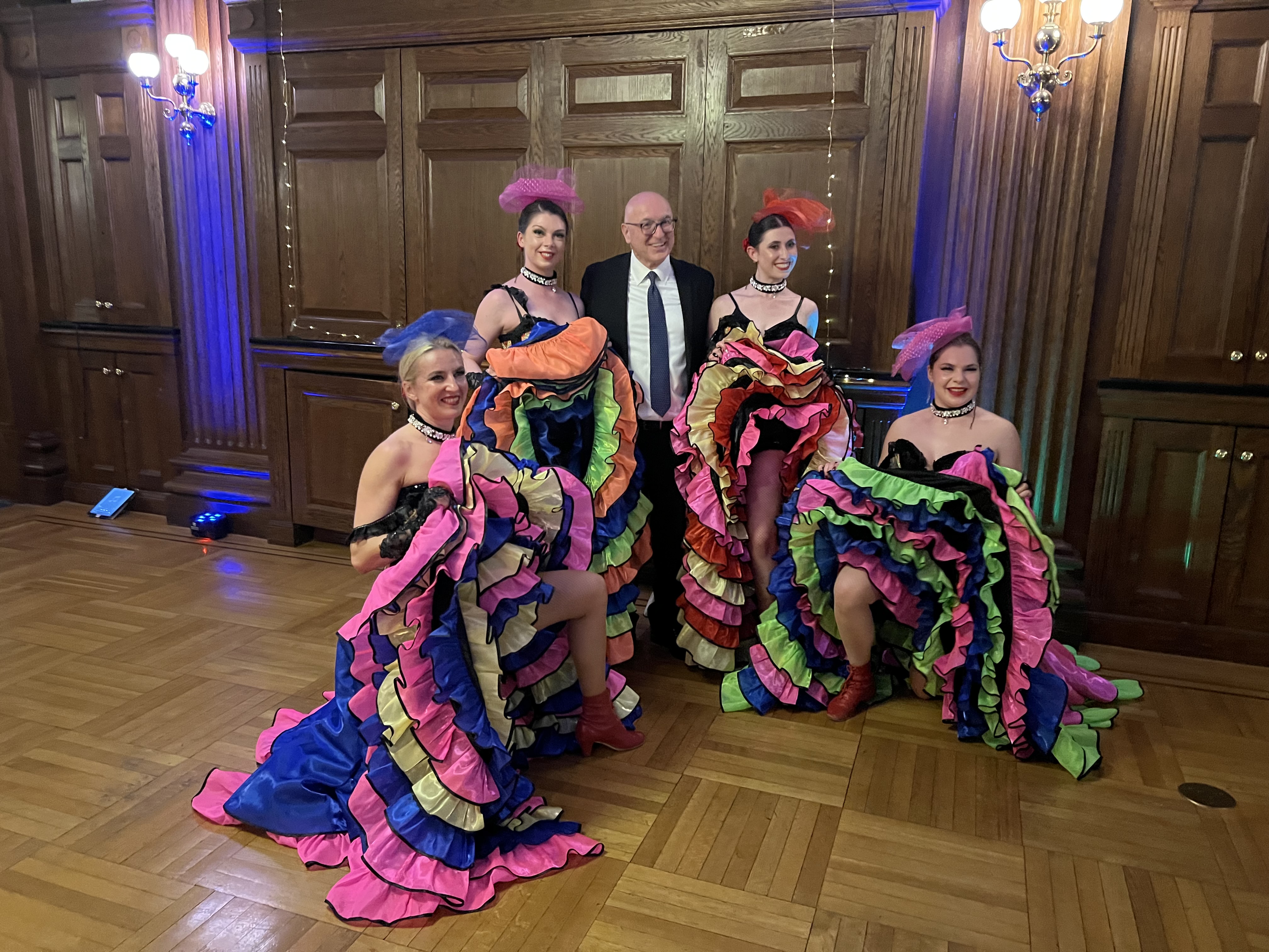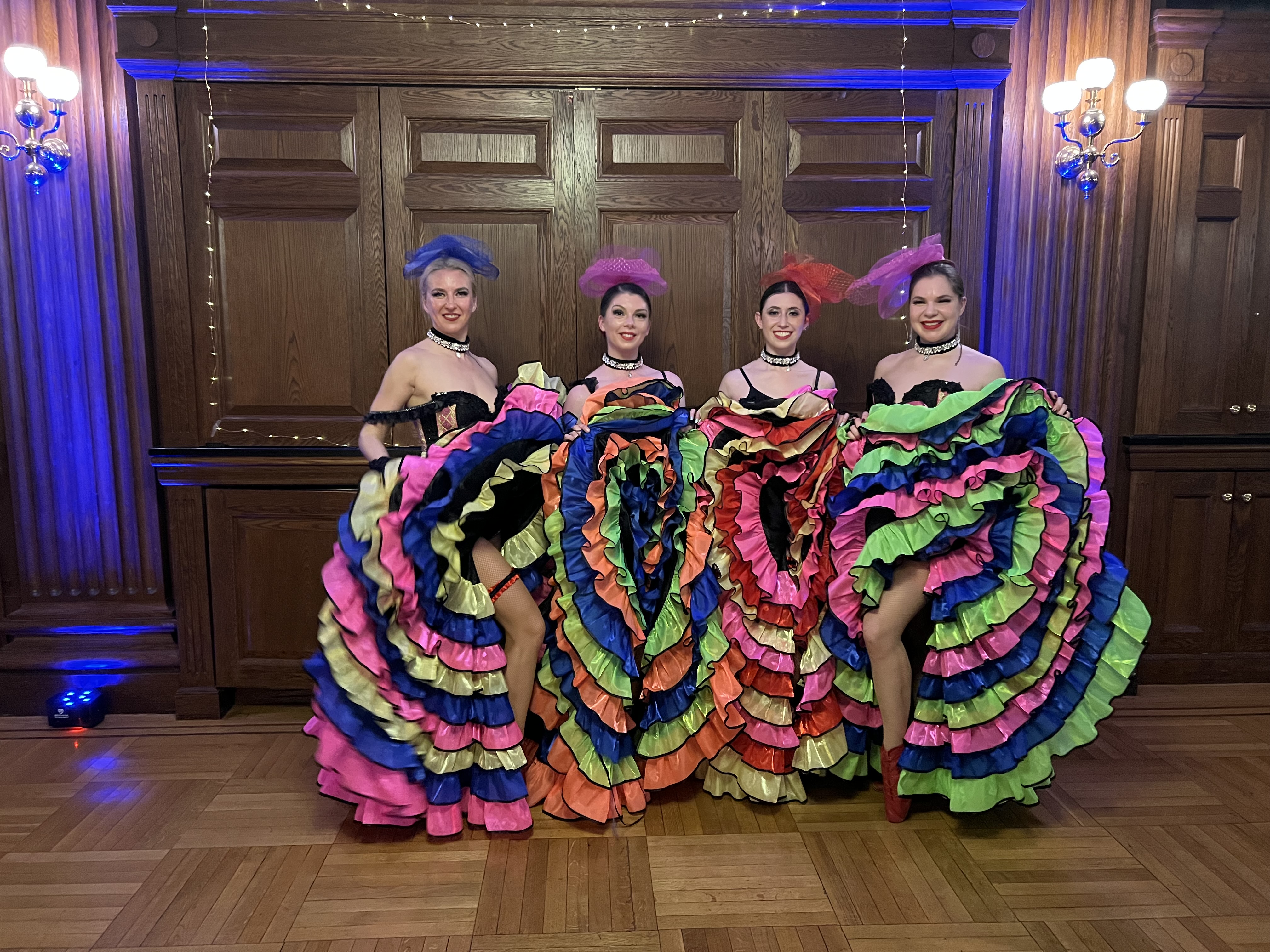 On Saturday, August 13th, 2022 around 9pm three dancers performed at wedding reception at the Metropolitan Club of New York, 1 E 60th St, New York, NY 10022. Dancers Alisa, Dinara and Olga start the party after dinner, mix and mingle, pose for photos, do short Can-Can dance workshop with any guests who will be willing to try. Dancers performed two Can-Can routines: one classical, one modern, and also danced with the guests for a short period of time.