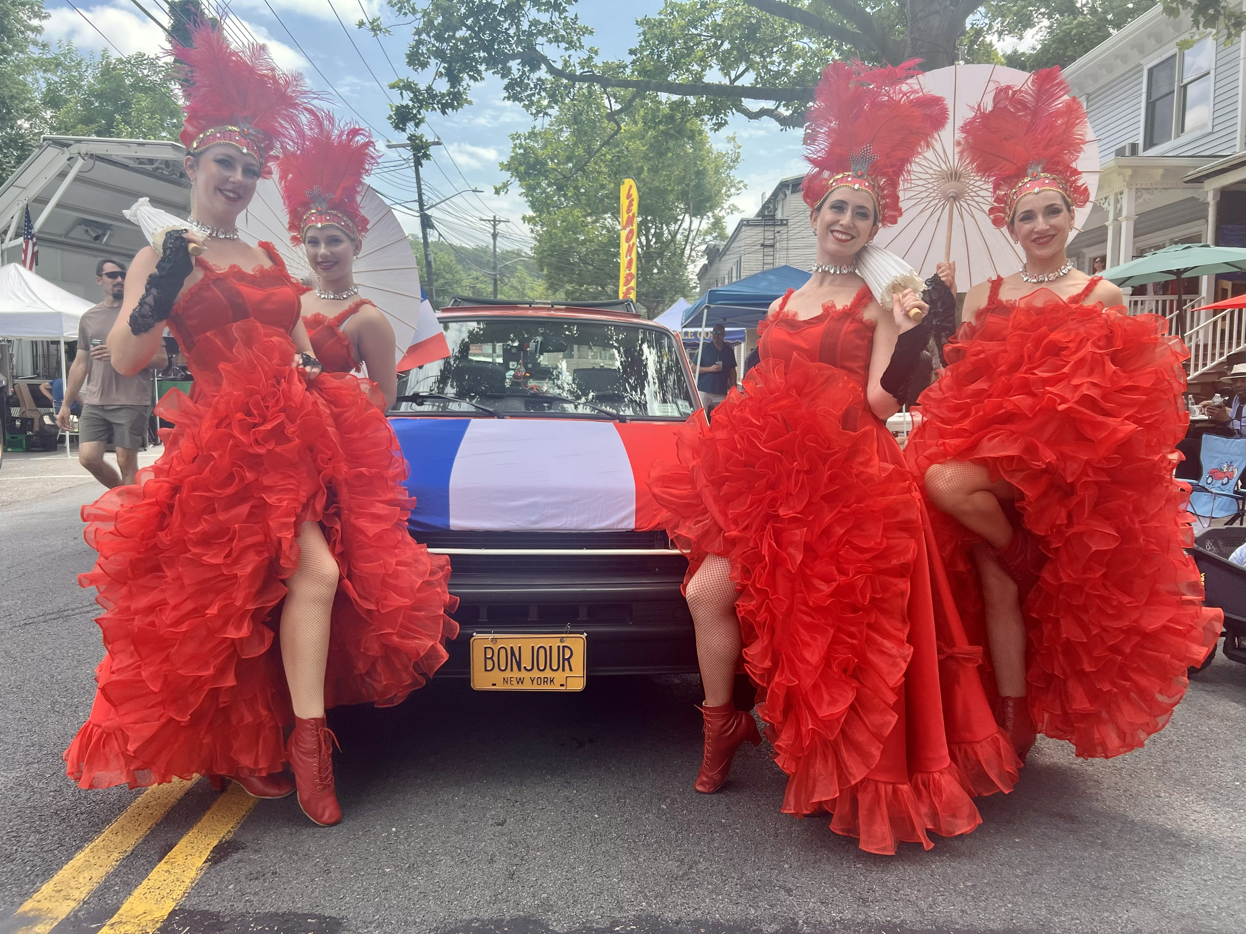 Four dancers performed on Saturday, July 12, 2025 during Piermont's Bastille Day street fair celebration. There were two performances of two different Can-Can routines: traditional and modern.