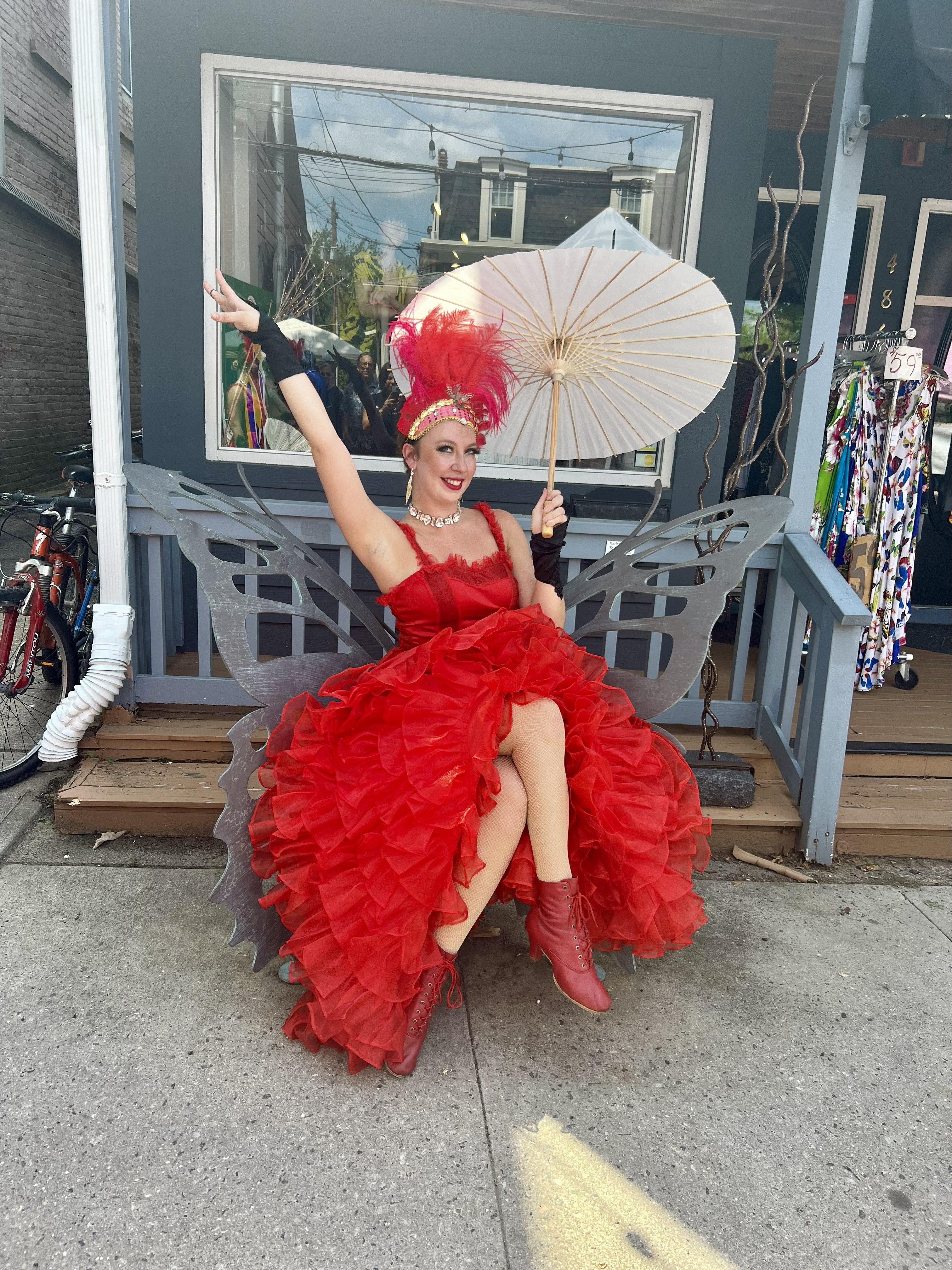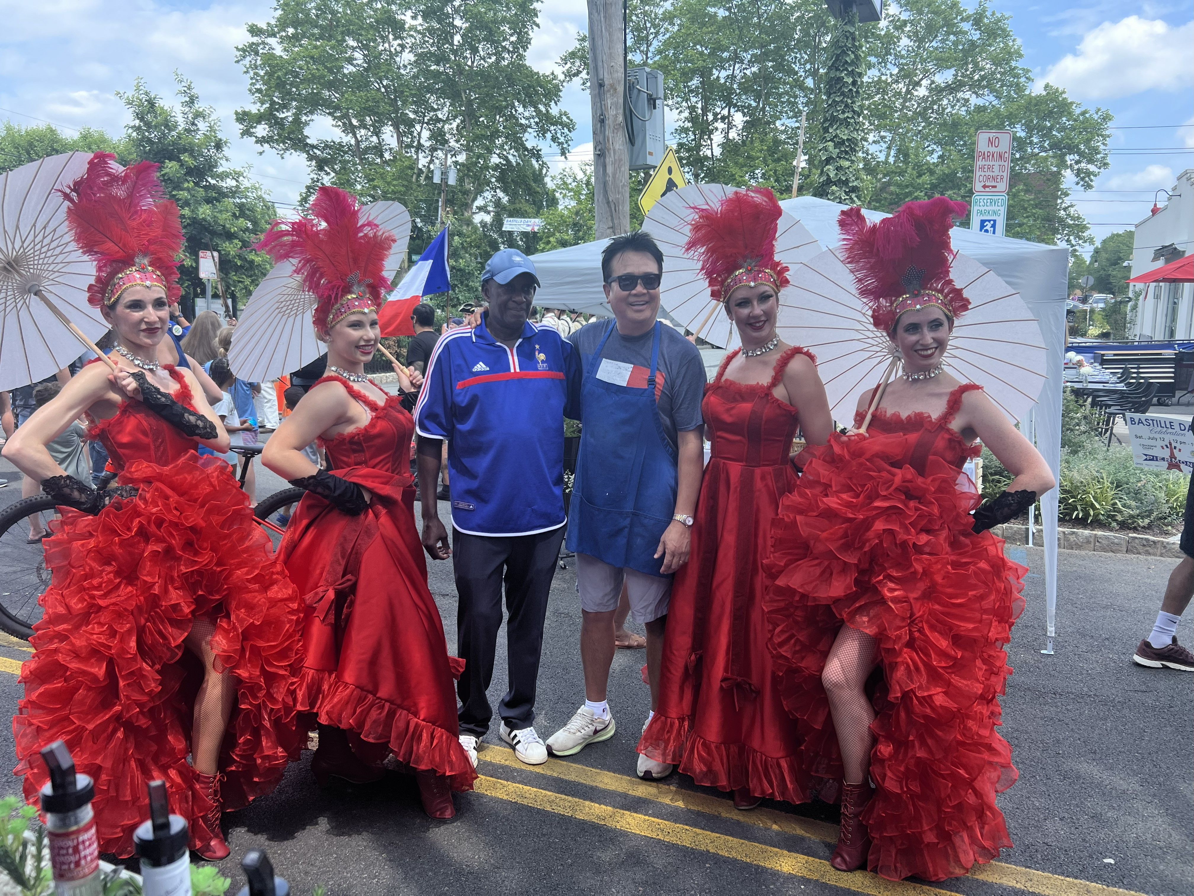 On Saturday, July 15th, 2023 at 1pm and 4pm four dancers performed during the Bastille Day Street Fair Celebration Event presented by the Piermont Chamber of Commerce in Piermont, New York. Dancers performed two different Can-Can routines: traditional and modern, posed for photos, mix and mingle and provided Can-Can dance workshop for any audience members. The street was closed from noon to 9 o'clock in the evening. There was no stage.