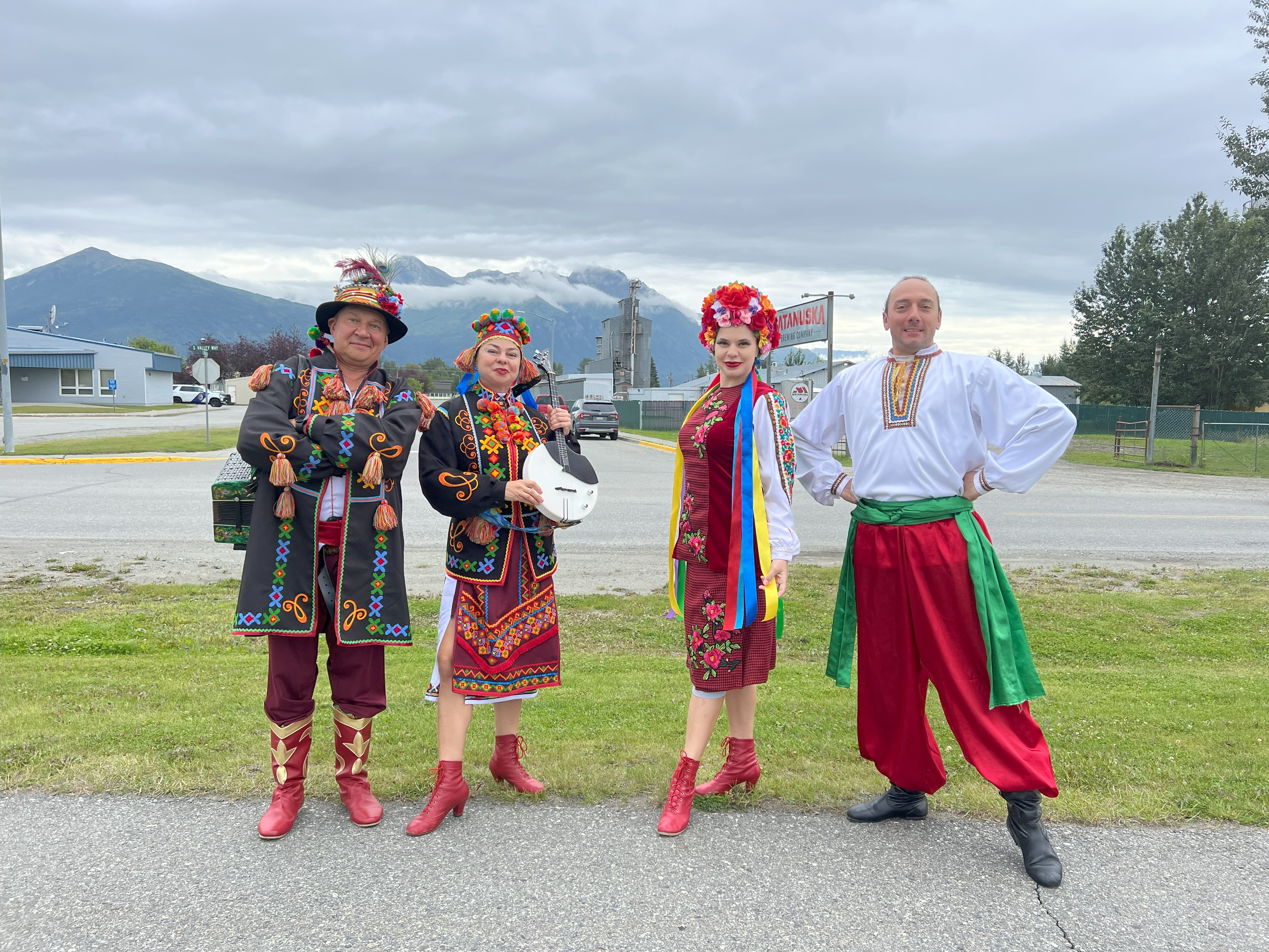 Two dancers (Alisa, Serhiy), two musicians (Elina, Mikhail) performed during Alaska State Fair in Palmer. Schedule of performances: Friday, Aug 18, 2023 - Monday, Aug 21st, 2023, 2:15pm, 4:15pm, 6:30pm at the Alyeska Pipeline Colony Stage.