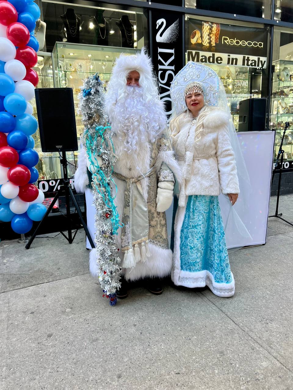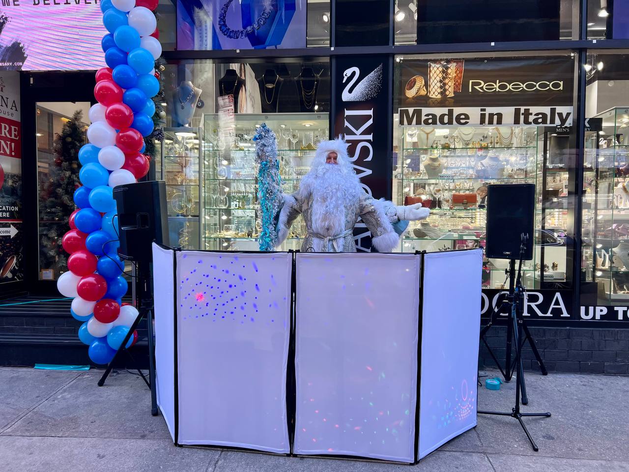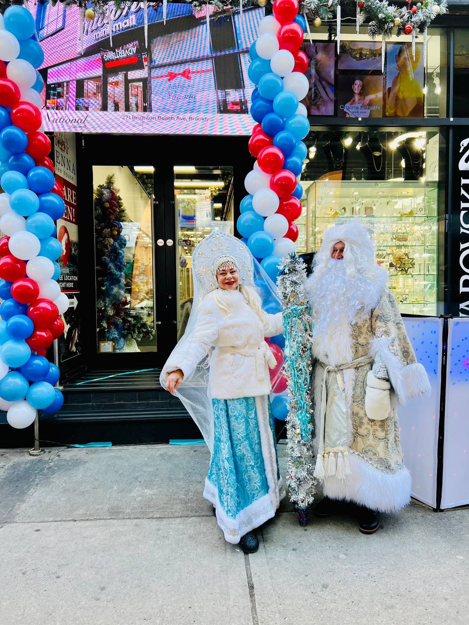 MC Snegurochka and DJ Ded Moroz provided DJ and MC services during Grand Opening event on Brighton Beach in Brooklyn, New York on January 13th, and January 15th, 2026. MC Snegurochka asked people to stop by at the new business location to check out services, and get some free coffee and tea while DJ Ded Moroz spinned most popular Russian New Year's songs. Диджей Дед Мороз и ведущая Снегурочка провели презентацию на открытии нового бизнеса на Брайтон-Бич Авеню в Бруклине. Диджей Дед Мороз миксовал самые популярные новогодние хиты, в то время как ведущая Снегурочка зазывала прохожих зайти в новый офис, согреться горячим чаем с кофе и бутербродами.