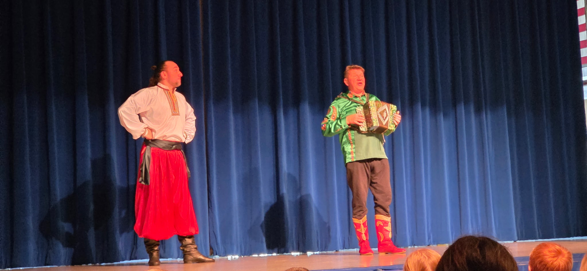 Two one hour shows at Columbia Ridge Elementary School in Ephrata, Washington, 60 H St SE, Ephrata, WA 98823 on Monday, November 17, 2025, 9:30am and 1pm. Cast: Mikhail Smirnov (garmoshka, guitar, vocals, costume characters), Serhiy (dancer), and Elina Karokhina (balalaika, domra, dancer).more from Ephrata, Washington