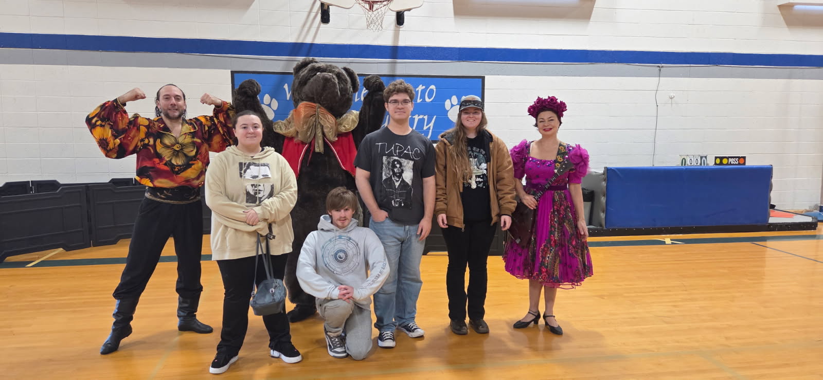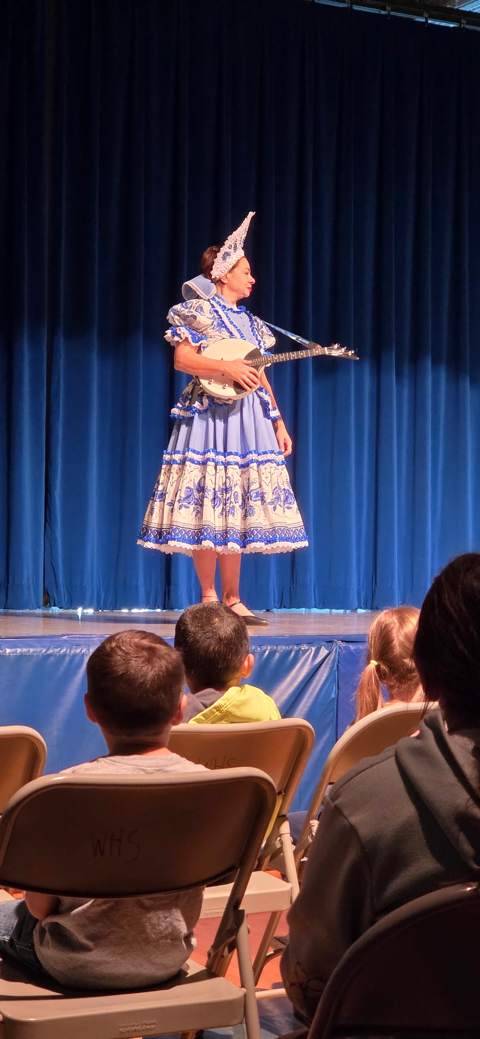 Members of ensemble Barynya - dancer Serhiy, Mikhail Smirnov (vocals, garmoshka , guitar, costume characters), and Elina Karokhina (costume characters, balalaika , dancer, domra ) - performed a program of Eastern-European dances, music, and songs on Wednesday, November 19, 2025 (9:30am) at Washtucna Elementary School , 730 Booth Ave, Washtucna, WA 99371.