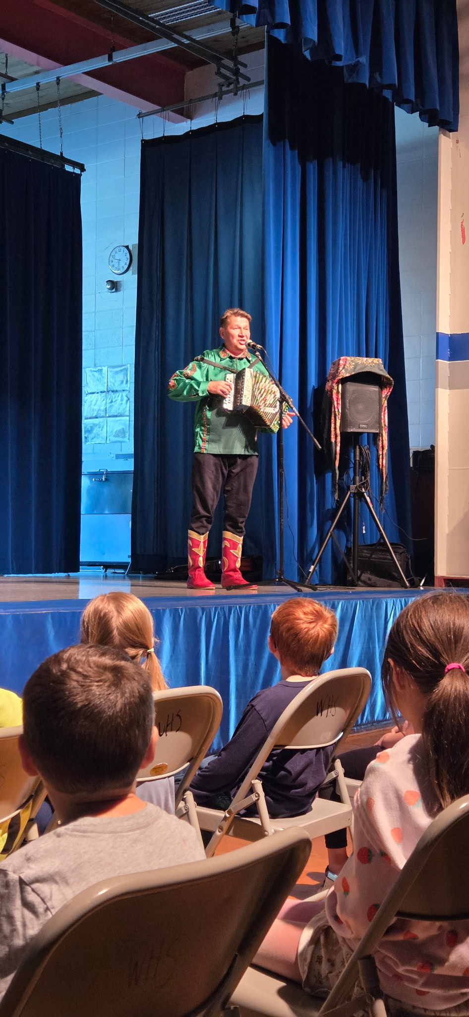 45 min school assembly program on Tuesday, November 18th, 2025, 1:30pm at the Creston Elementary School , 485 Southeast E Street, Creston, WA 99117. Cast: Mikhail Smirnov (garmoshka, guitar, vocals, costume characters), Serhiy (dancer), and Elina Karokhina (balalaika, domra, dancer).more from Creston, Washington