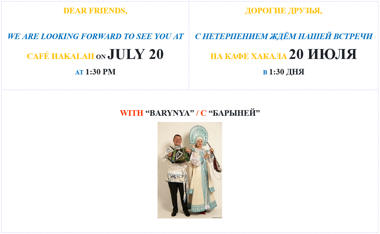 On Wednesday, July 20th, 2022 from 1:30pm to 2:30pm Mikhail Smirnov and Elina Karokhina provided live performance via Zoom for Schechter Holocaust Services organization in Waltham, Massachusetts. The program was sponsored by Jewish Family & Children’s Service, 1430 Main Street, Waltham, MA 02451. Title of the event: Virtual "Cafe Hakalah".