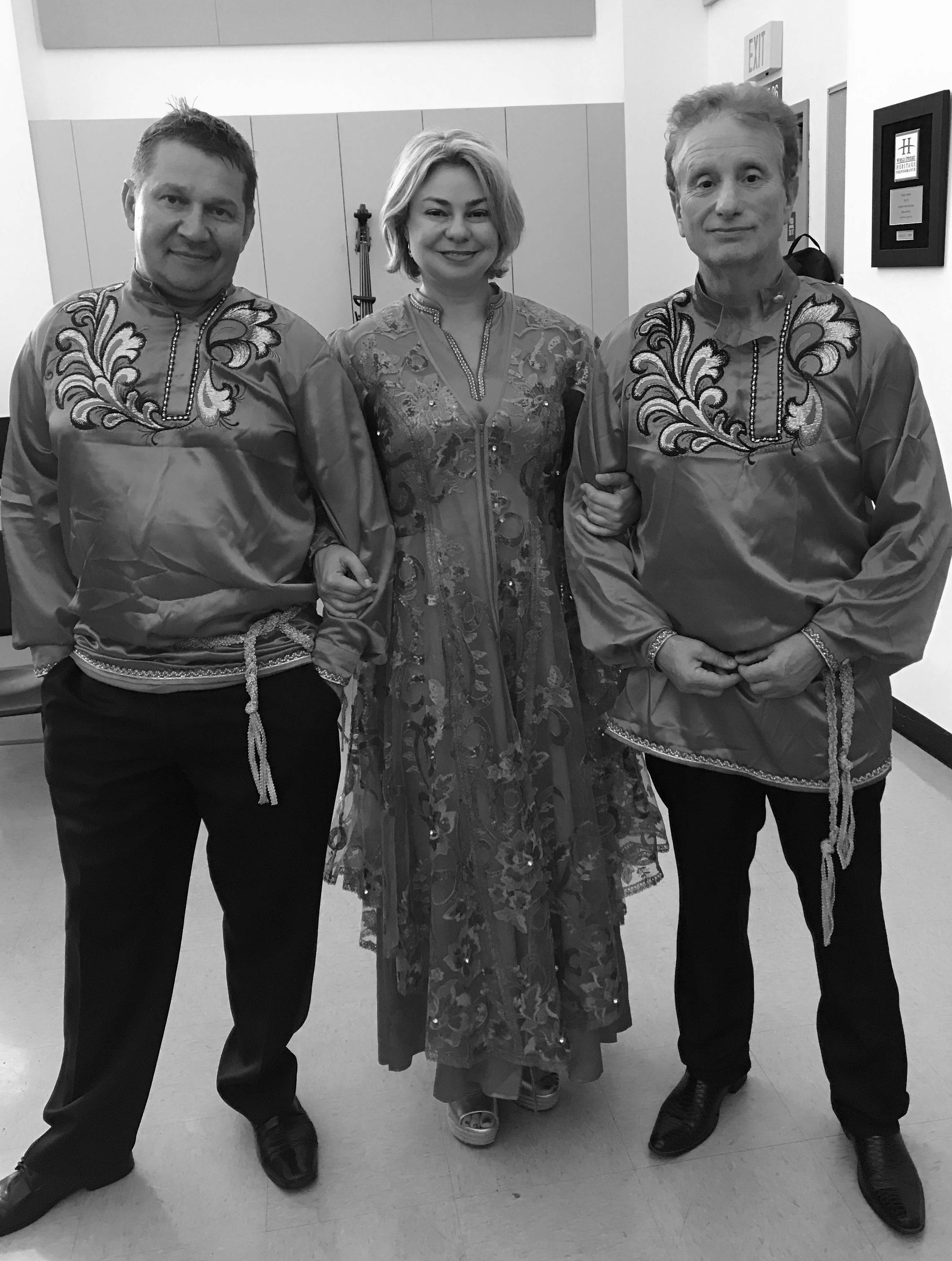 Leonid Bruk, Elina Karokhina, Mikhail Smirnov performed one hour concert in Darien, Connecticut in the summer of 2017. Concert and workshop took place at the Darien High School. The Balalaika Trio performed Siberian Nanai Wrestling Dance "Нанаец", Russian folk button accordion "GARMOSHKA" (Russian: Гармошка) introduction with traditional Russian song "Kalinka" (Калинка), Russian wedding dance "The Snowstorm" (Russian: "Метелица"), Kamarinskaiya, Russian folk instrument balalaika introduction ("Камаринская"), Russian Tongue Twisters Medley ("Скороговорки"), Jewish wedding dance "Свечки", Russian Percussian Orchestra interactive game with students ("Трещётки"),