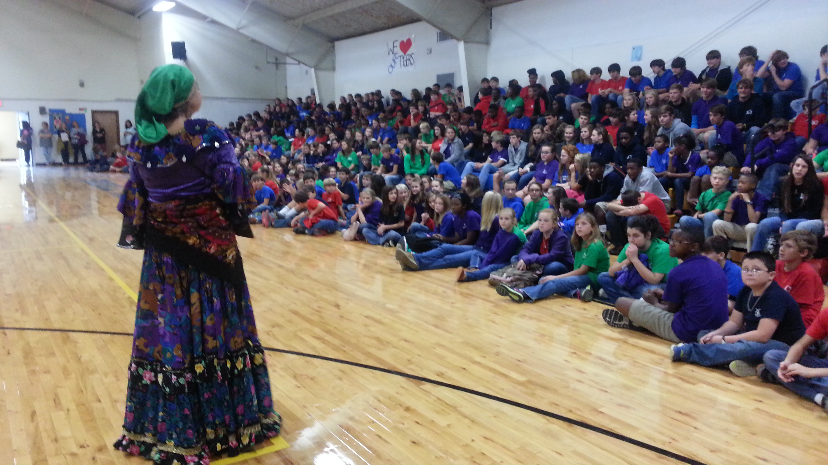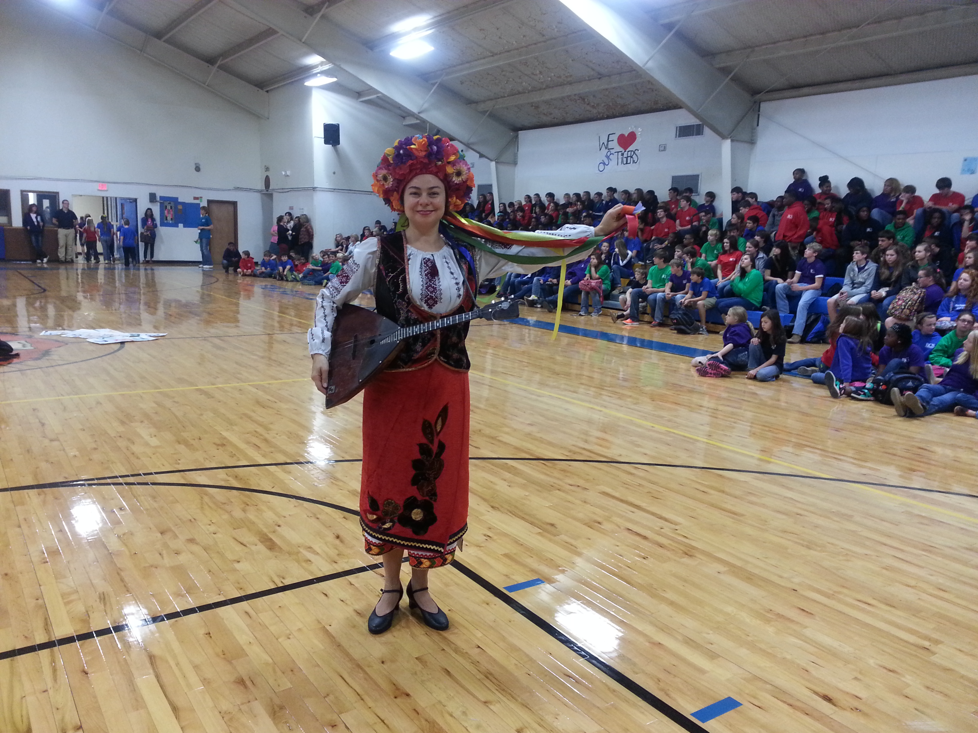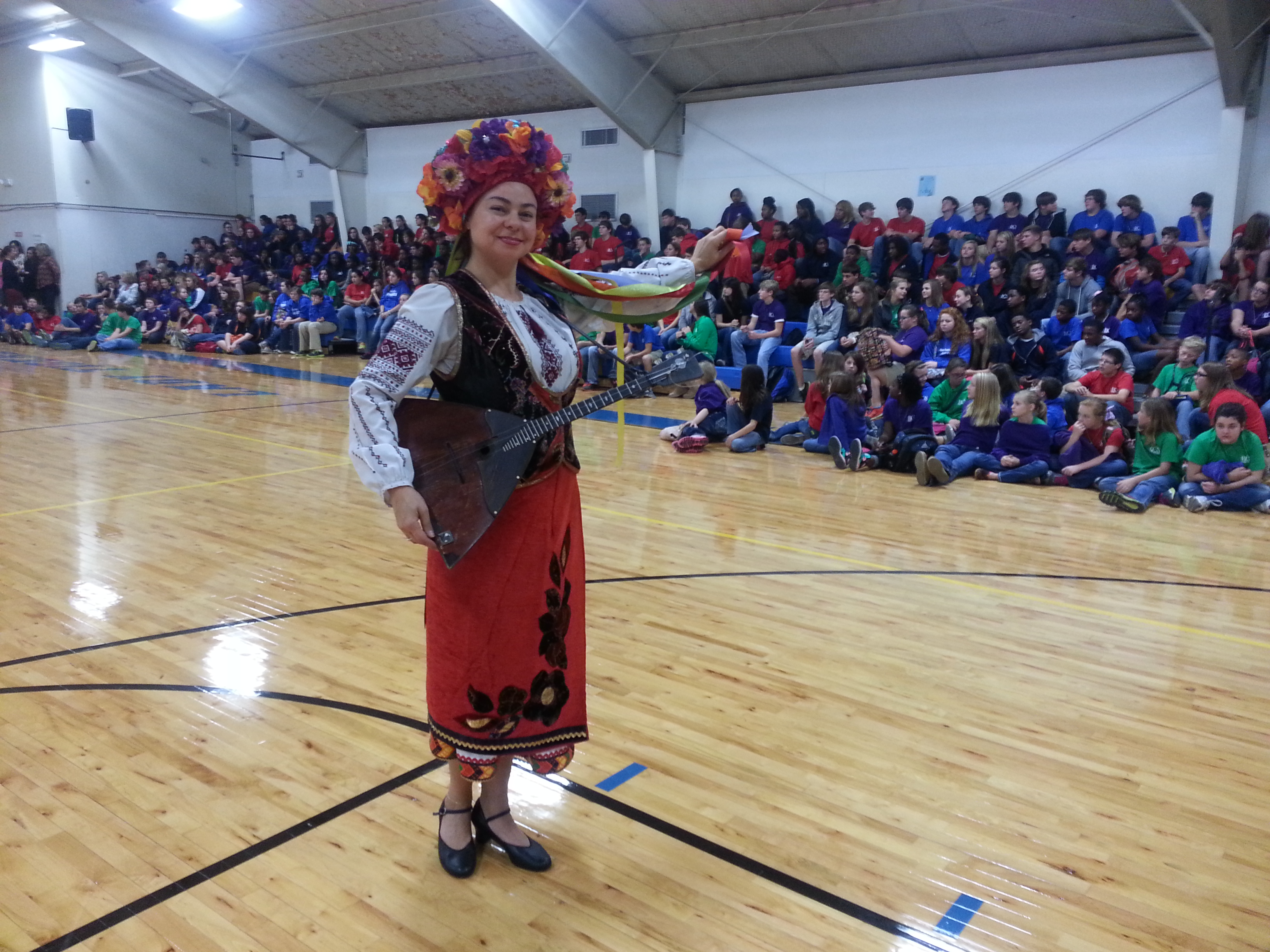 Bastrop, Louisiana, LA, Russian dancers, musicians, singers, balalaika, costumed characters, multicultural school assembly