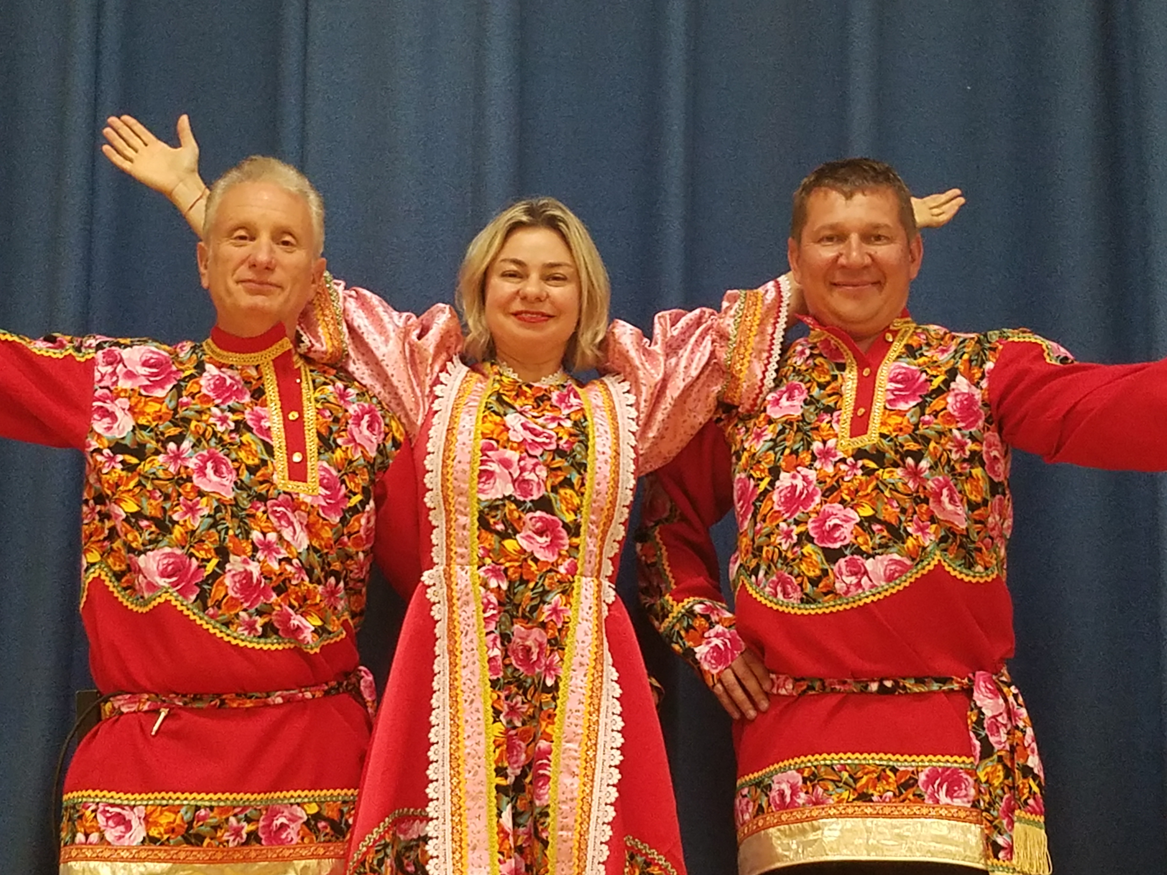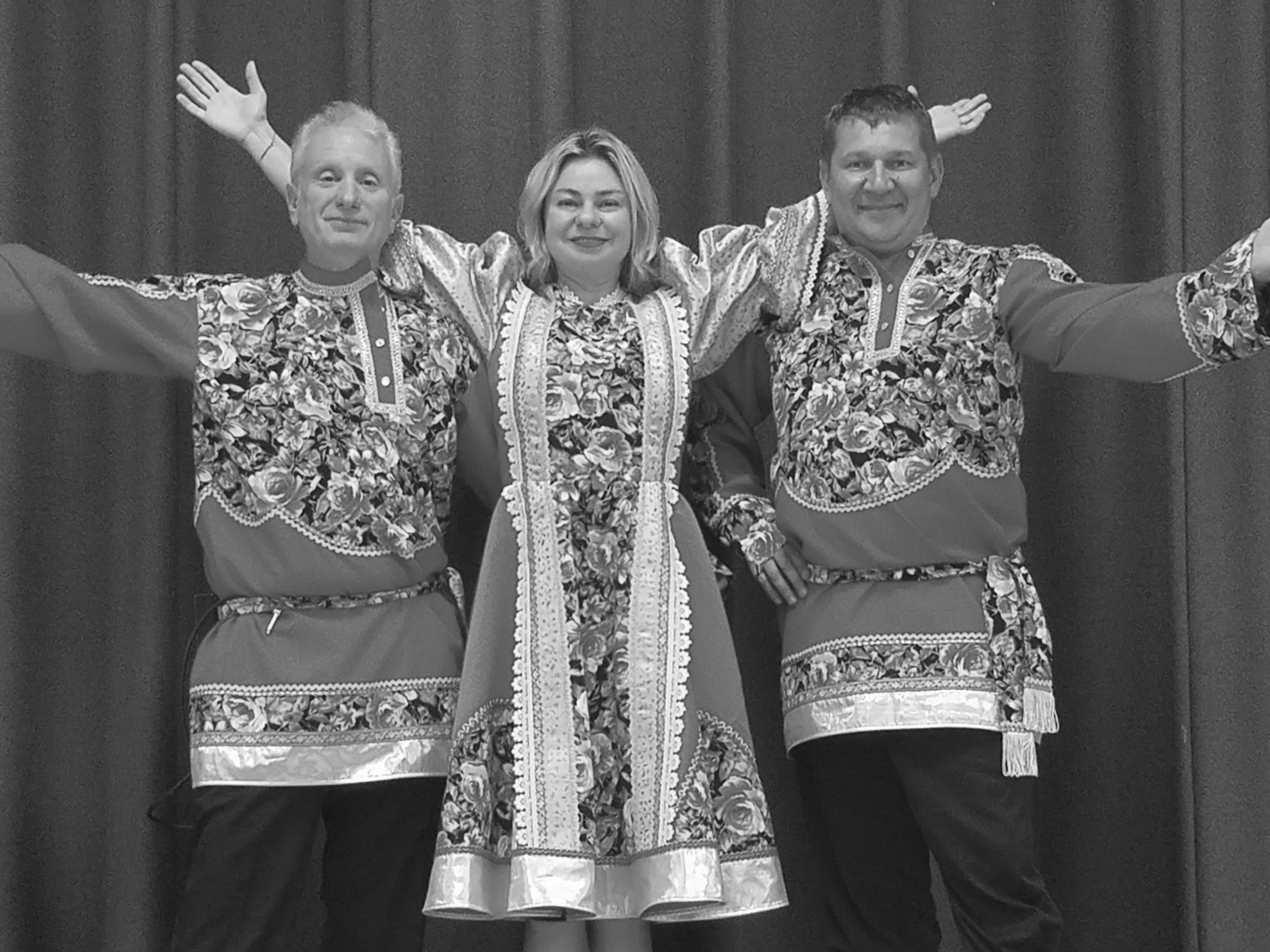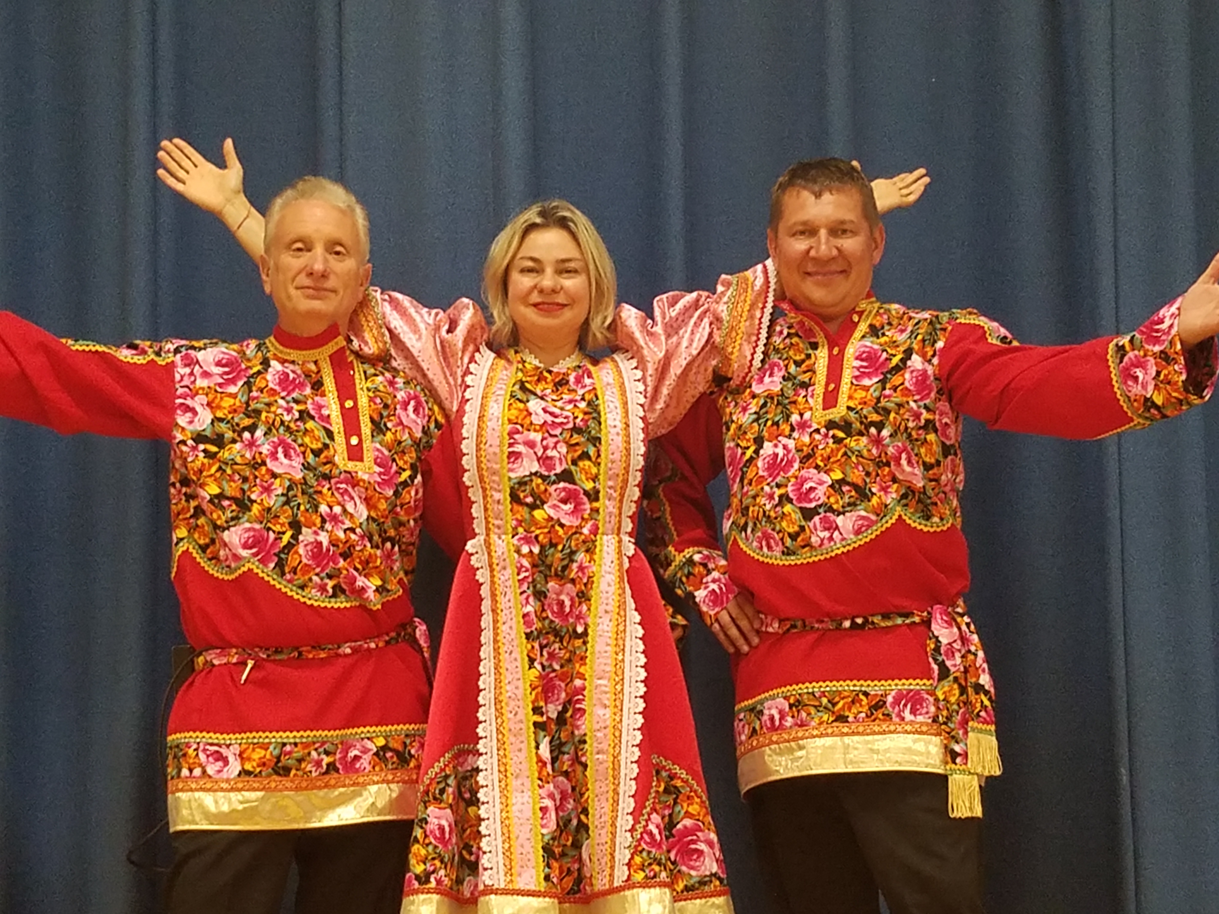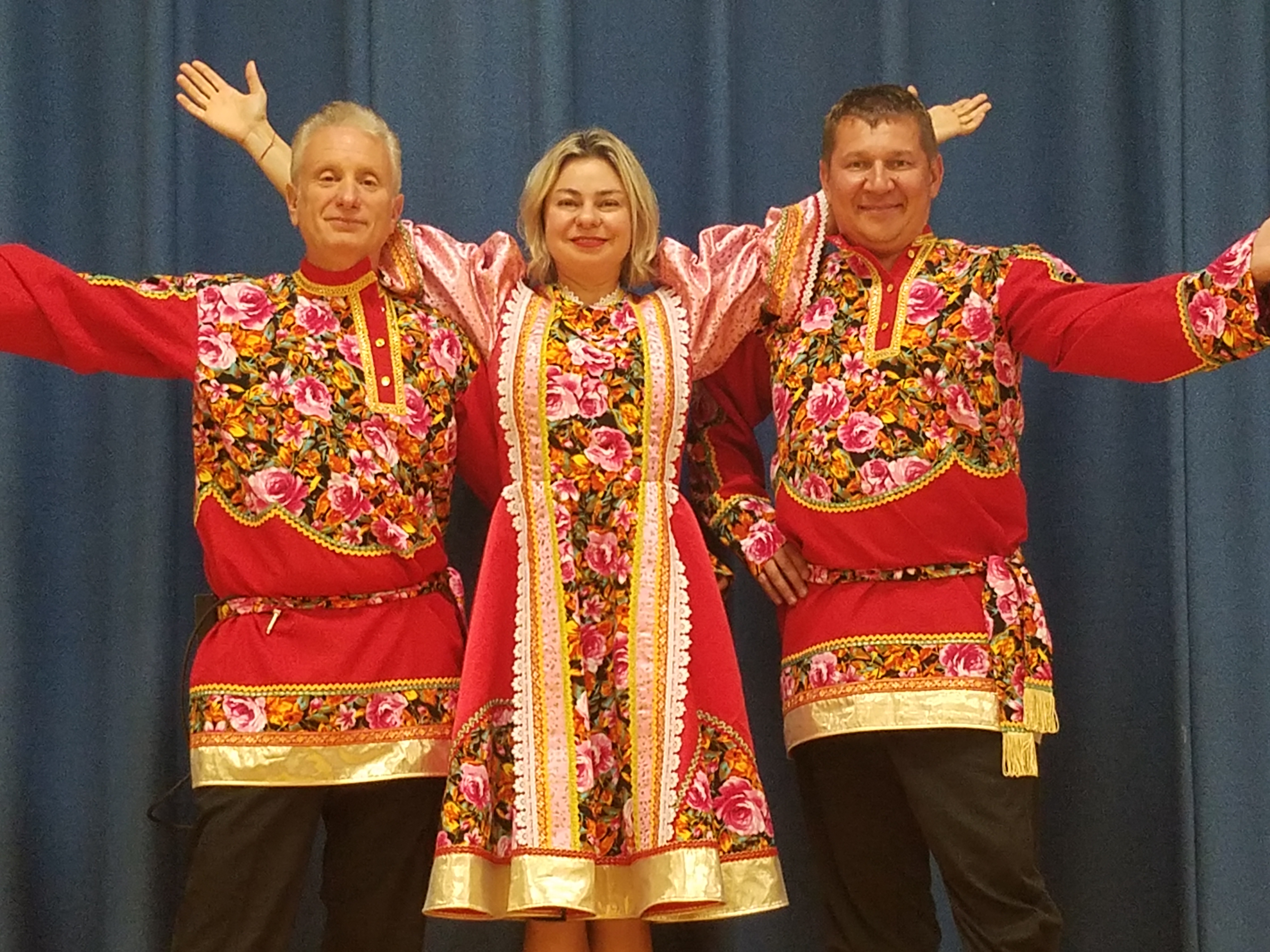 Russian folk music, dance and song Balalaika Trio Leonid Bruk (balalaika-contrabass), Elina Karokhina (balalaika), and Mikhail Smirnov (garmoshka, guitar, vocals) performed a school assembly concert on Thursday, September 28, 2017 at 10am at the Rodgers Forge Elementary School located in Baltimore, Maryland. A program of the performance included