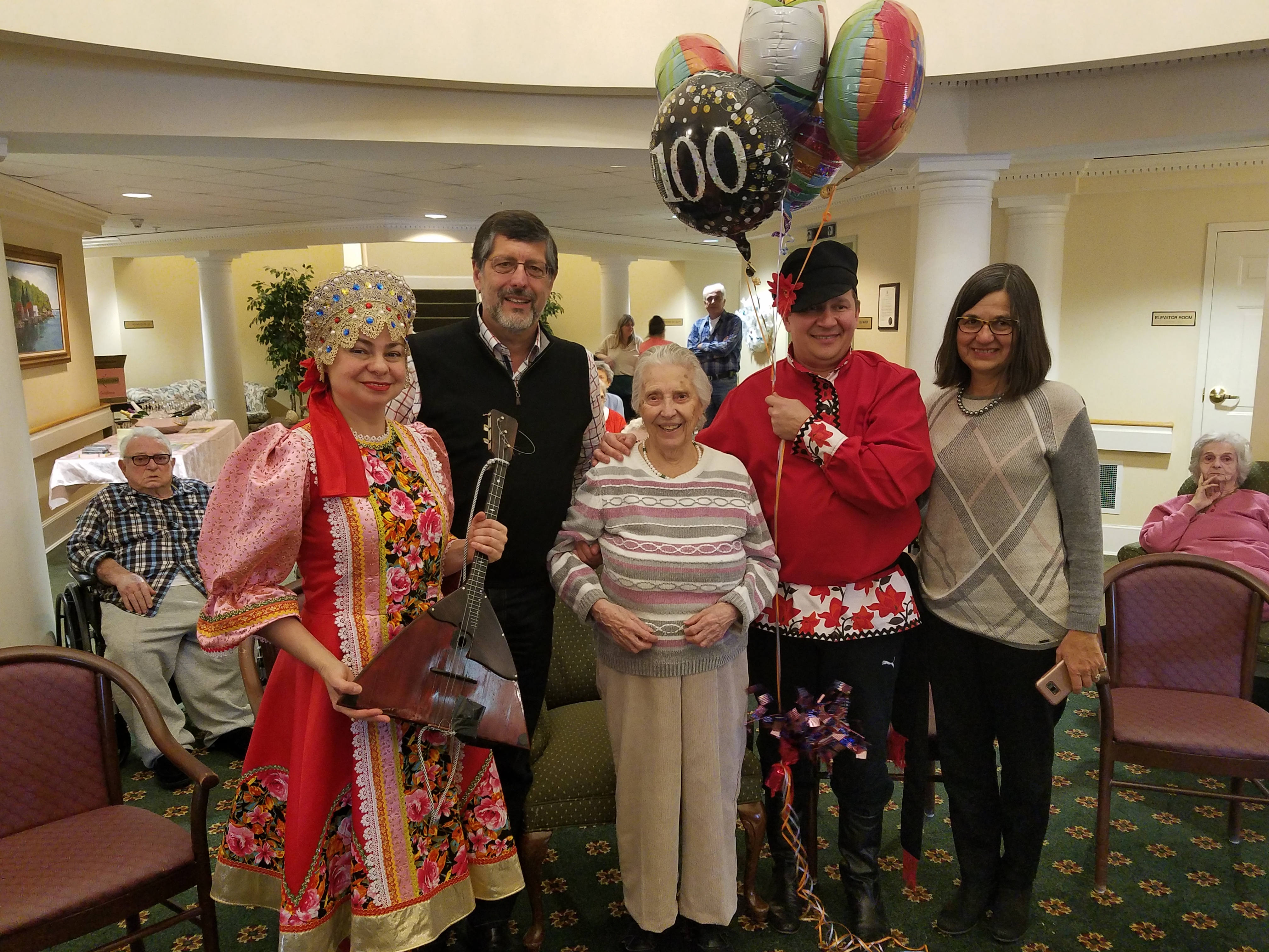Russian Balalaika and Garmoshka Music and Song Duo performed a concert on Friday, March 23rd, 2018 during Anna Petrovna’s 100th Birthday Celebration at the John H. Whitaker Place, 30 Borough Road, Penacook, NH.