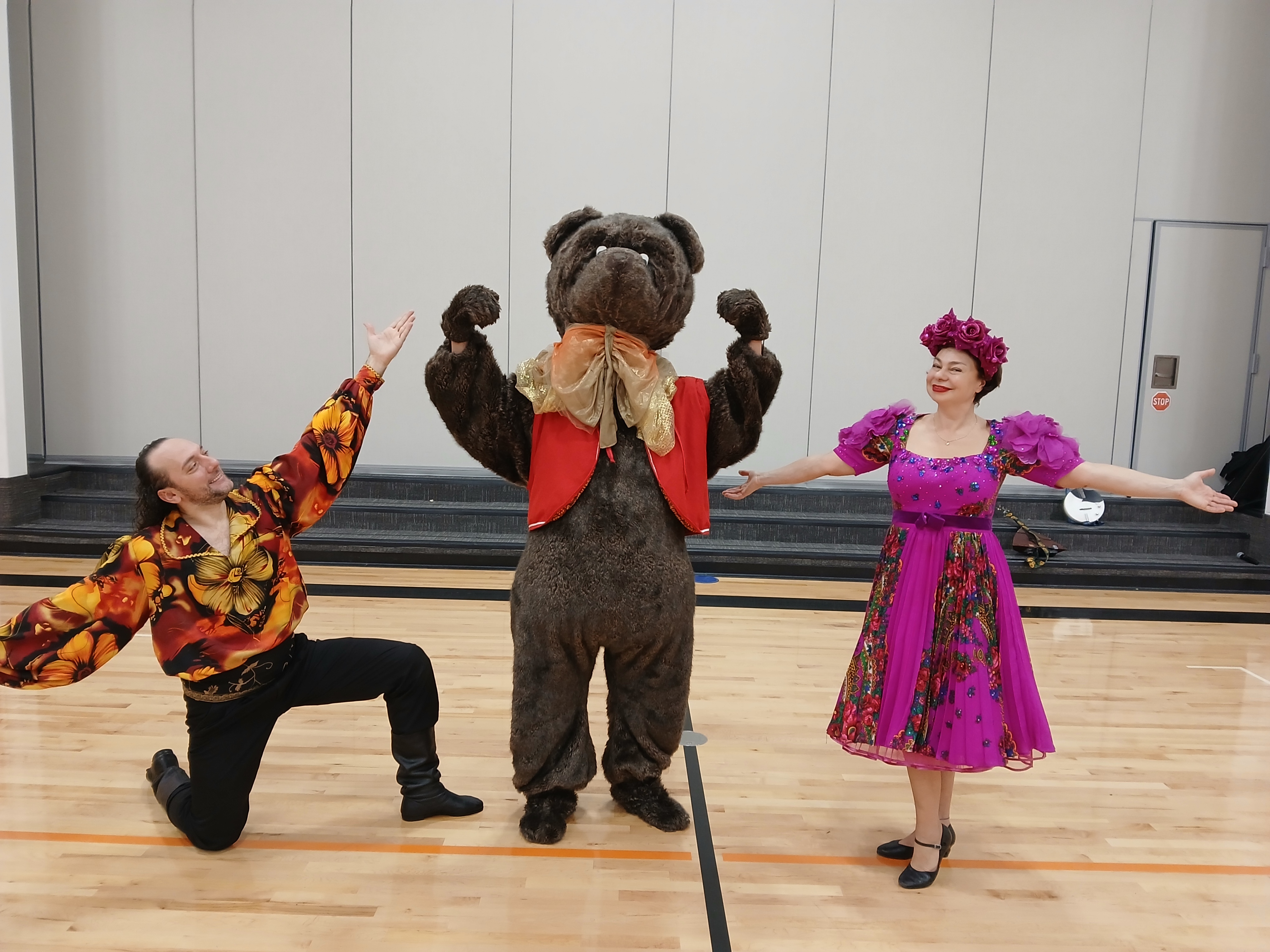 Members of Barynya Trio - Mikhail Smirnov (garmoshka, guitar, vocals, costume characters), Serhiy (dancer), and Elina Karokhina (balalaika, domra, dancer) - performed Eastern-European program of dances, music, and songs on Monday, November 17th, 2025 (9:30am and 1pm) at the Columbia Ridge Elementary School , 60 H St SE, Ephrata, WA 98823.